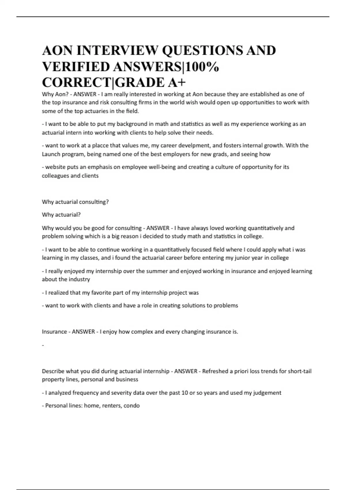 AON INTERVIEW QUESTIONS AND VERIFIED ANSWERS|100% CORRECT|GRADE A+