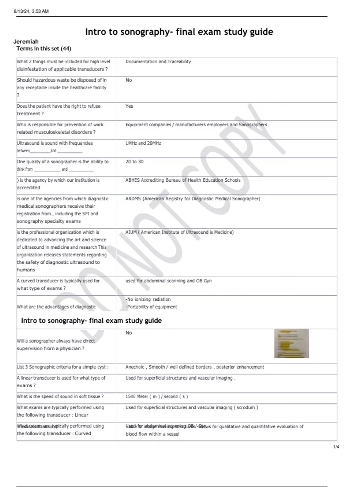Intro to sonography- final exam study guide EXAM STUDY GUIDE NCTA QUESTIONS WITH SOLVED