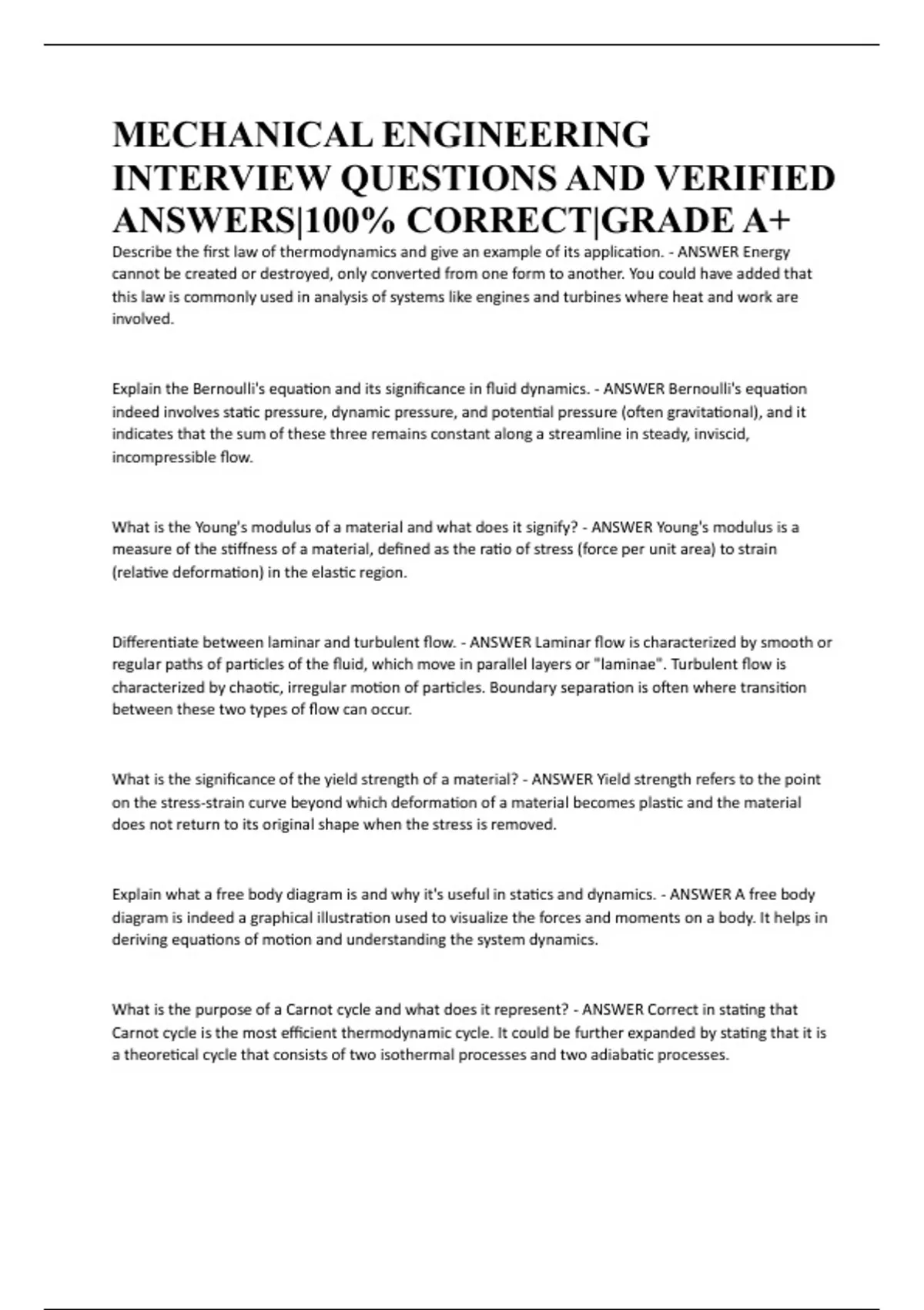 What is the significance of the yield strength of a material? - ANSWER Yield strength refers to the point