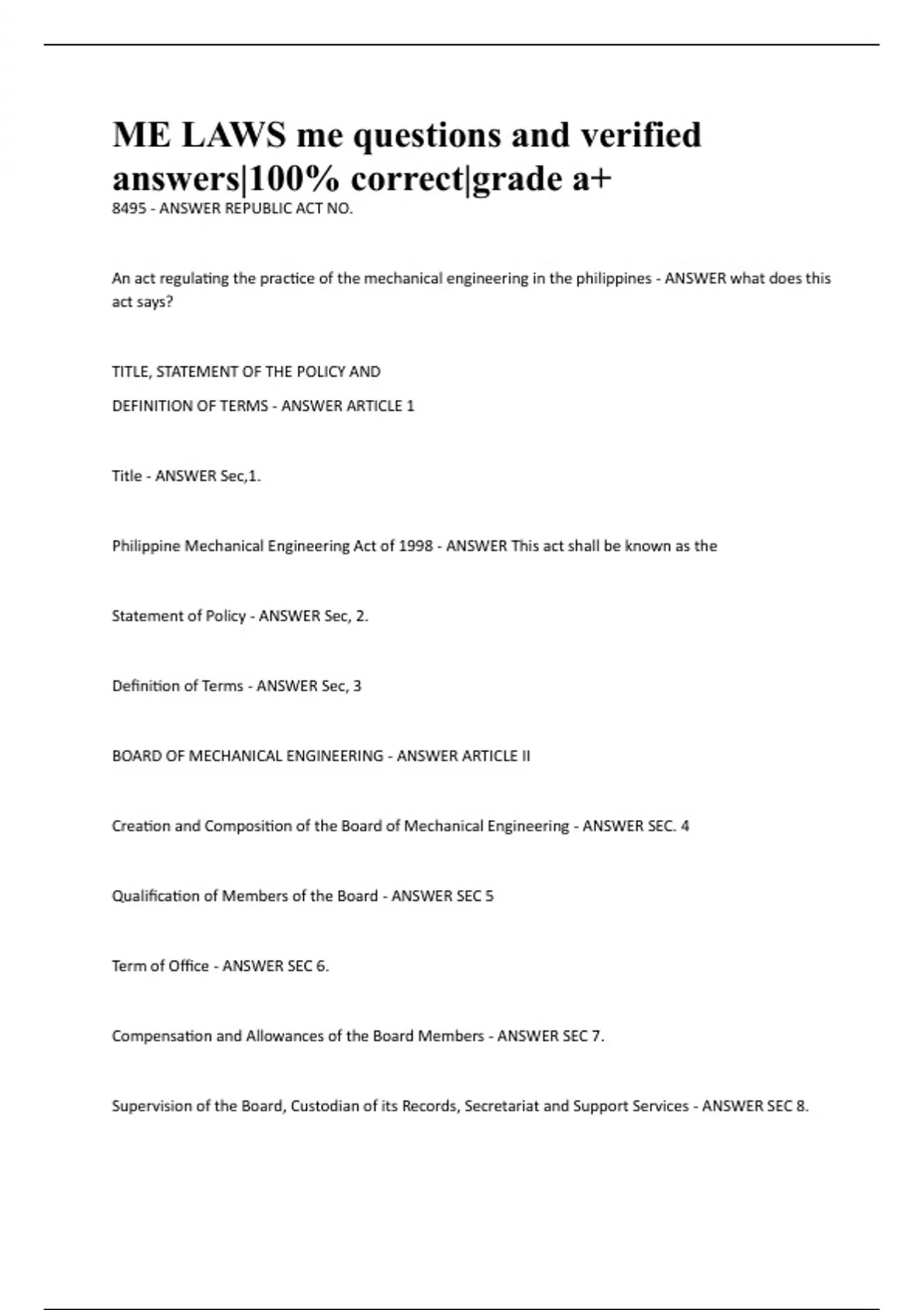 BOARD OF MECHANICAL ENGINEERING - ANSWER ARTICLE II