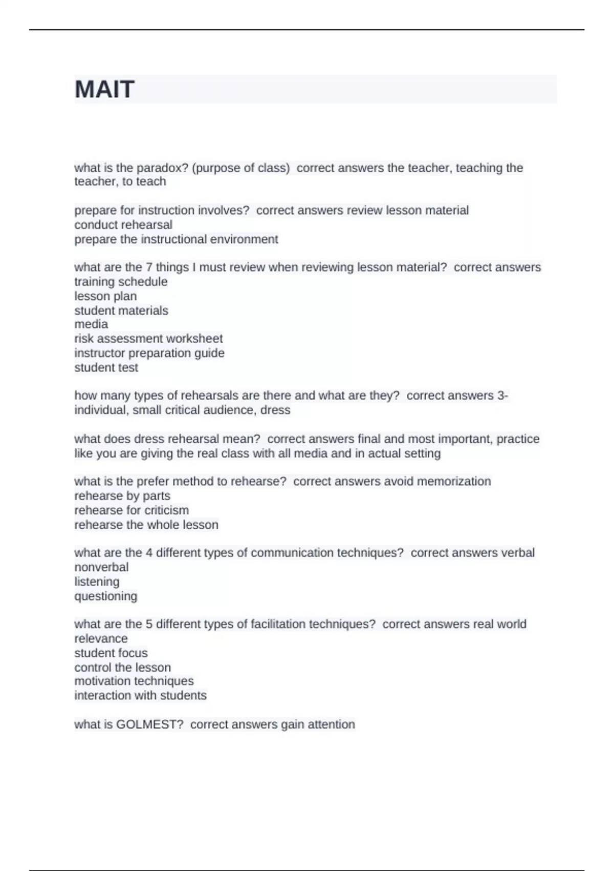 what is the prefer method to rehearse? correct answers avoid memorization