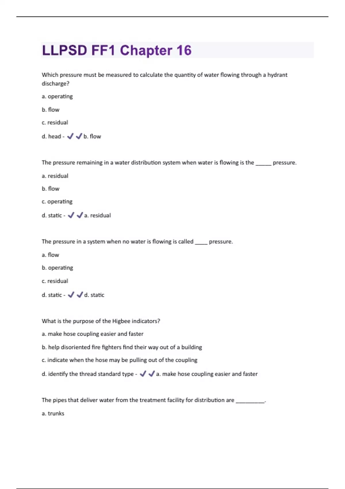 The pressure remaining in a water distribution system when water is flowing is the _____ pressure.