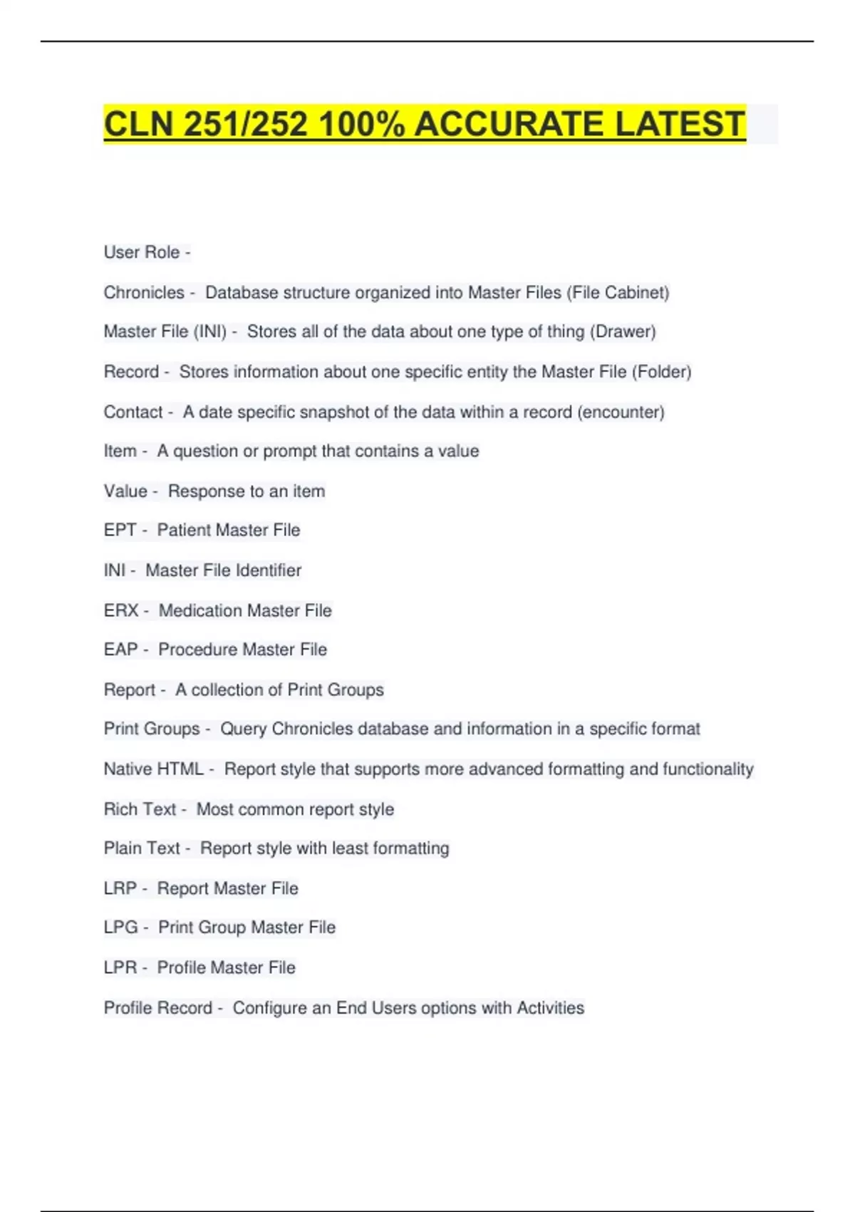 Record - Stores information about one specific entity the Master File (Folder)