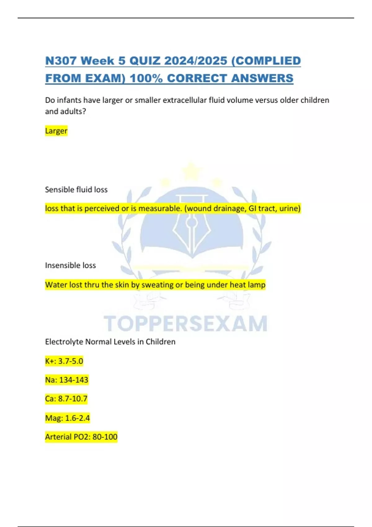 N307 Week 5 QUIZ 2024/2025 (COMPLIED