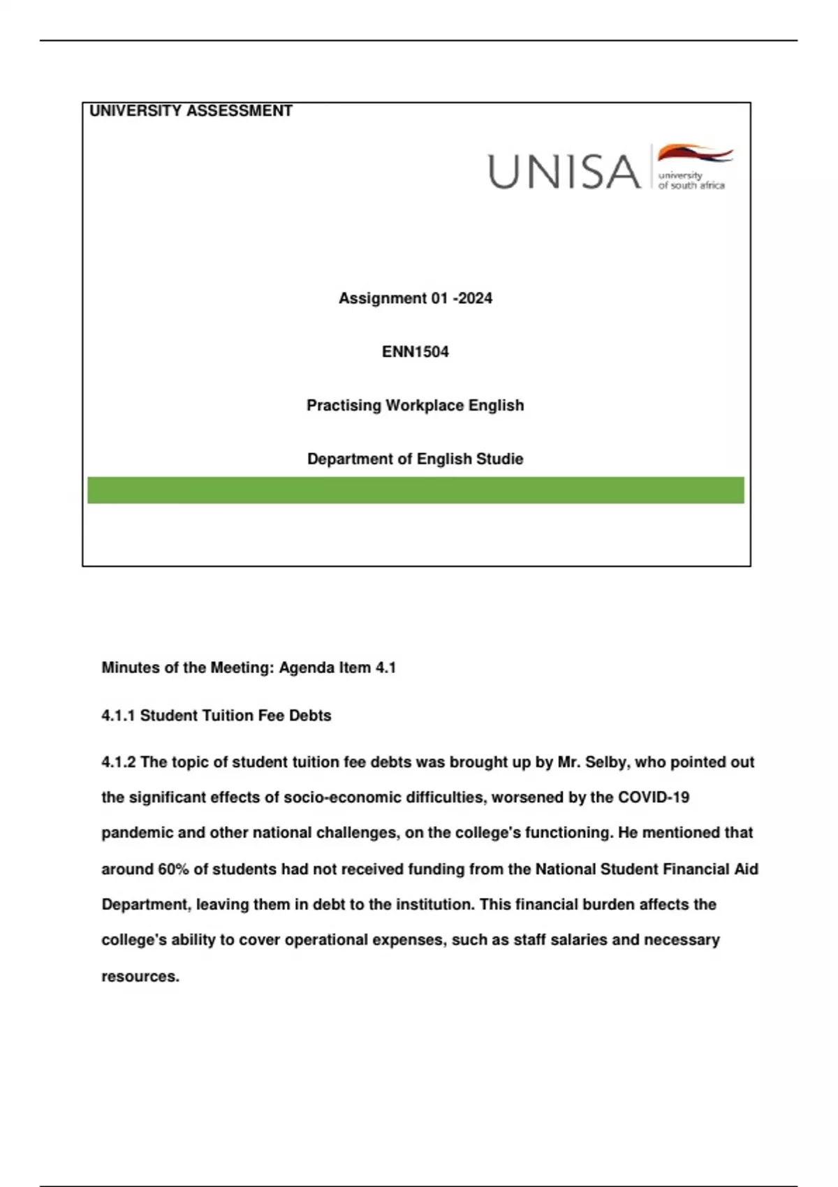 4.1.2 The topic of student tuition fee debts was brought up by Mr. Selby, who pointed out