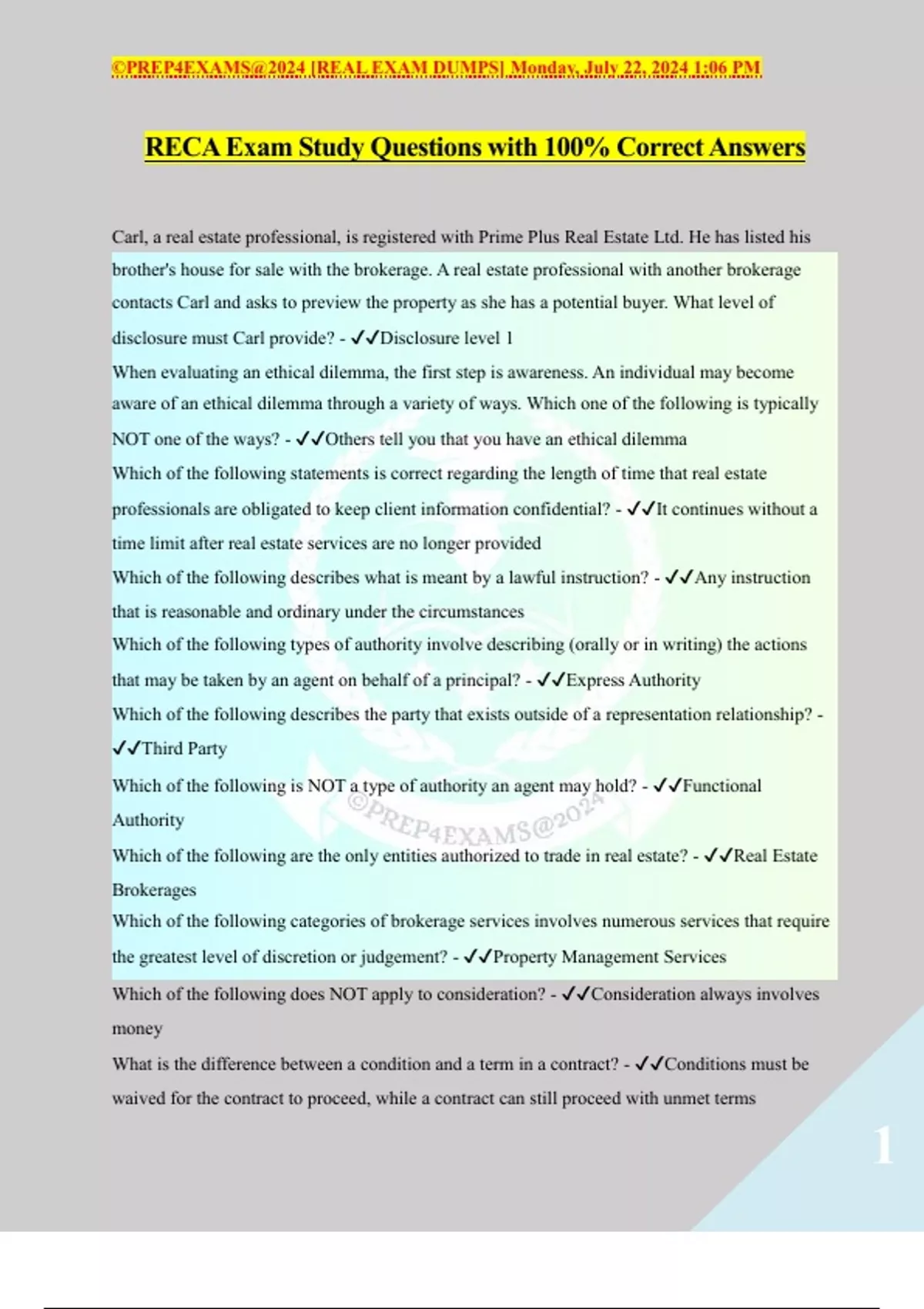 , ©PREP4EXAMS@2024 [REAL EXAM DUMPS] Monday, July 22, 2024 1:06 PM