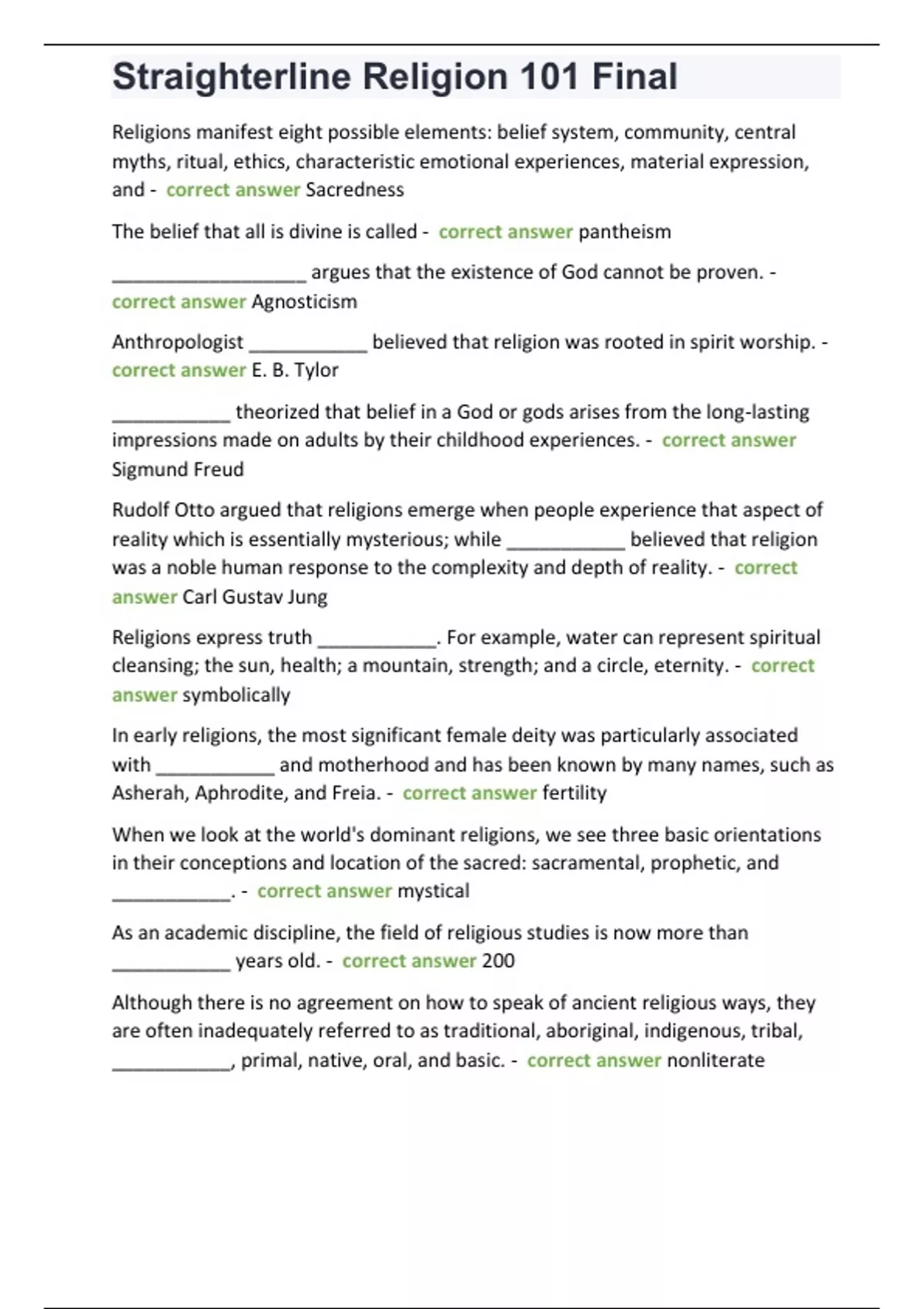 myths, ritual, ethics, characteristic emotional experiences, material expression,