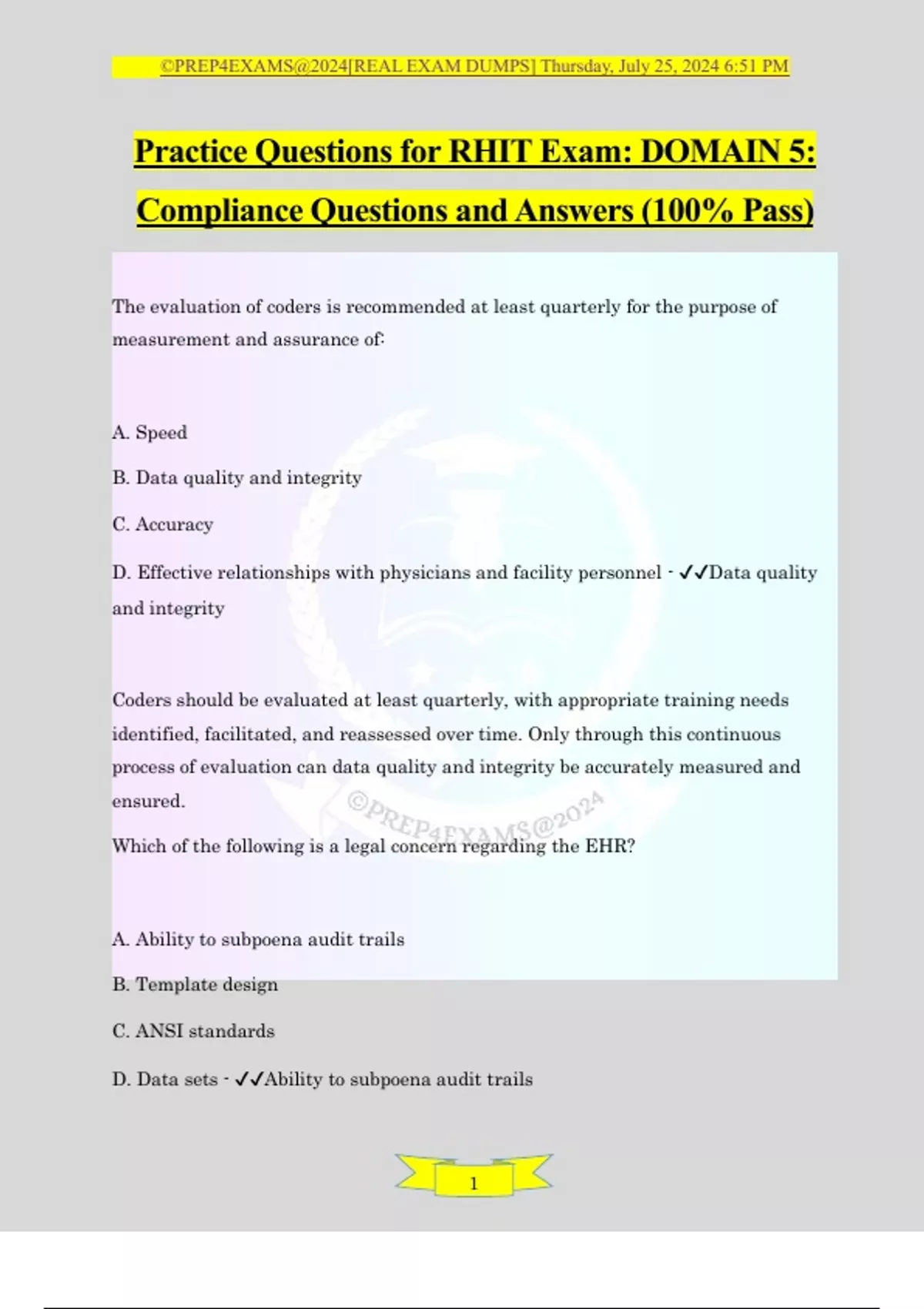 , ©PREP4EXAMS@2024[REAL EXAM DUMPS] Thursday, July 25, 2024 6:51 PM