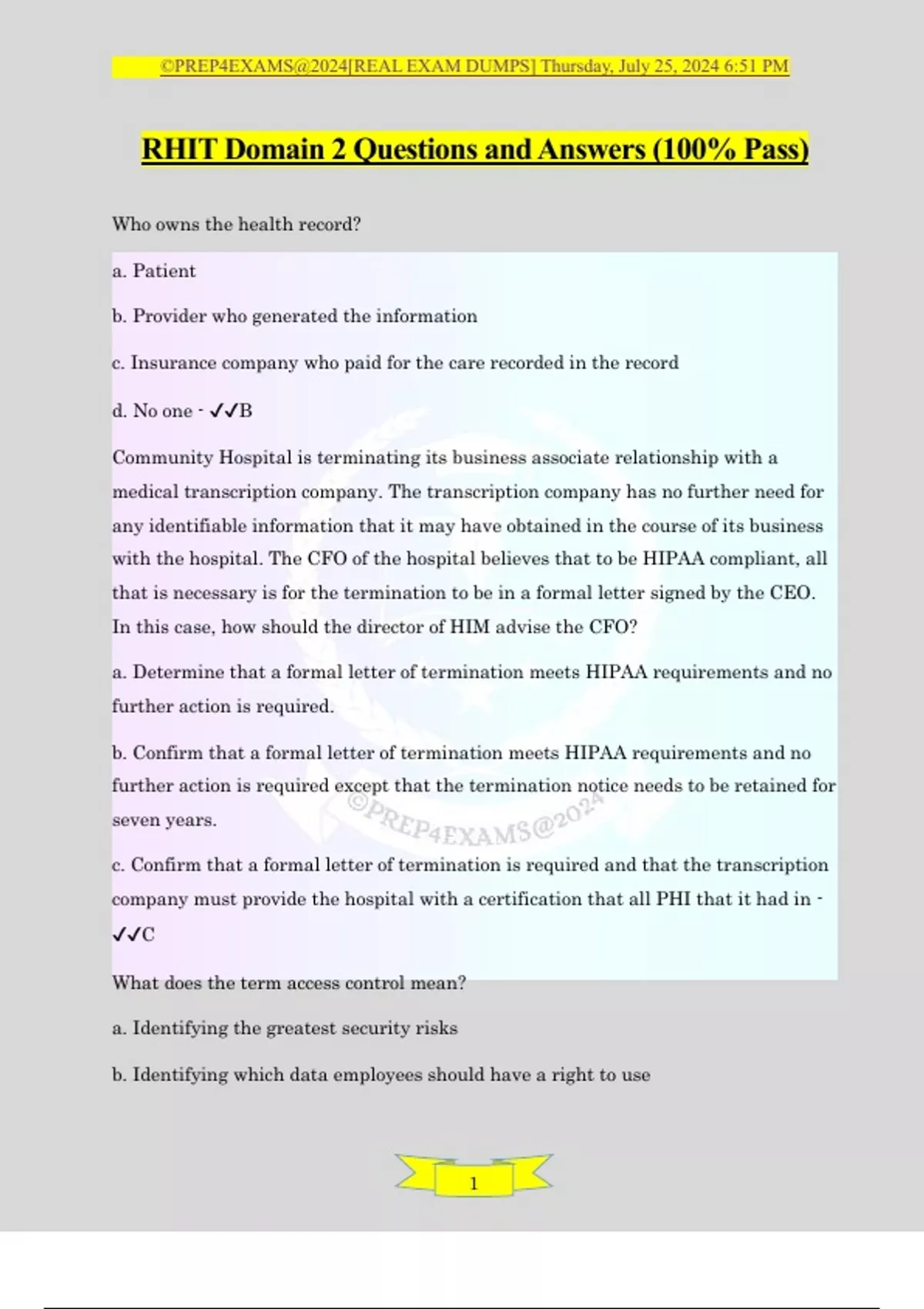 , ©PREP4EXAMS@2024[REAL EXAM DUMPS] Thursday, July 25, 2024 6:51 PM