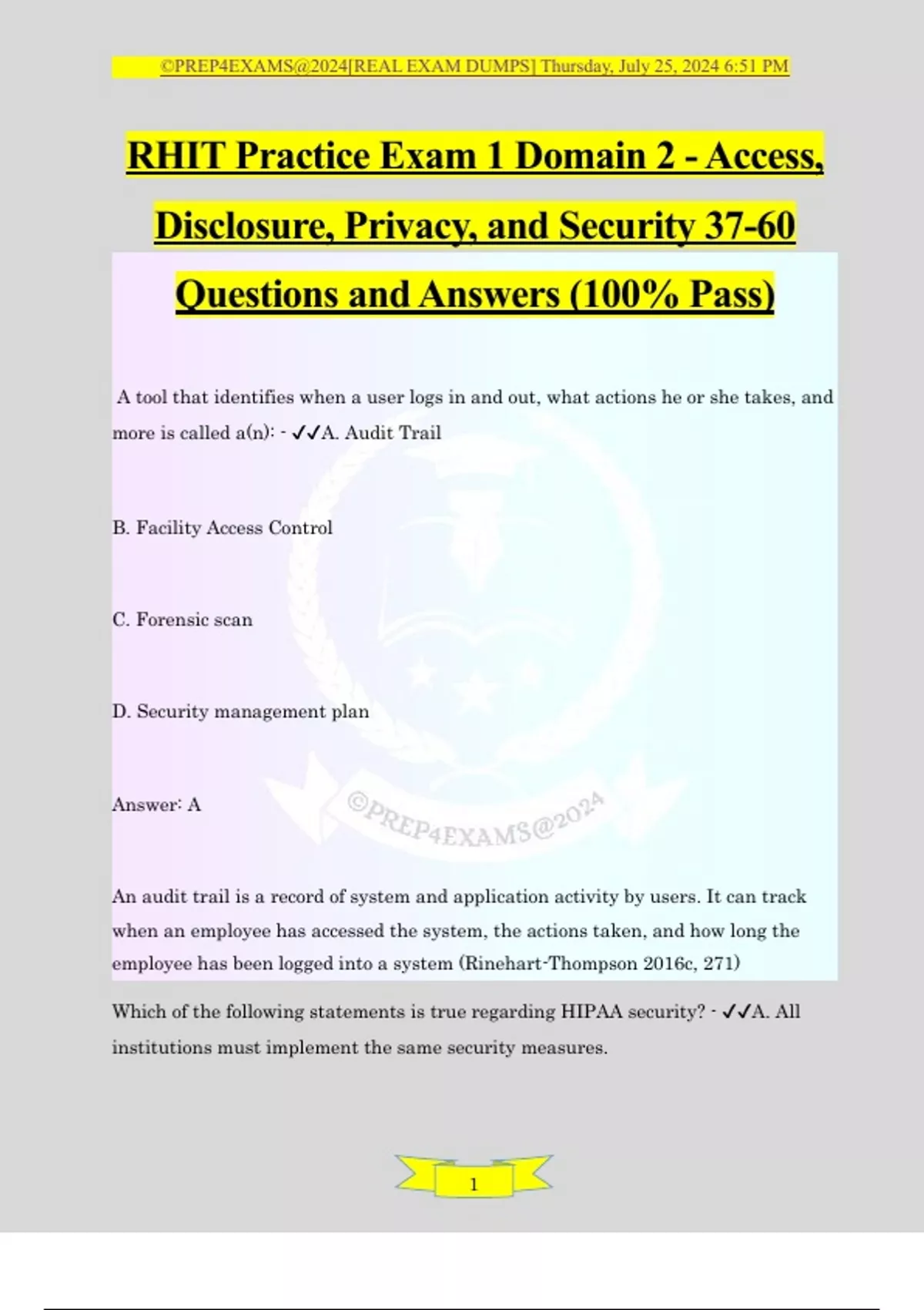 , ©PREP4EXAMS@2024[REAL EXAM DUMPS] Thursday, July 25, 2024 6:51 PM