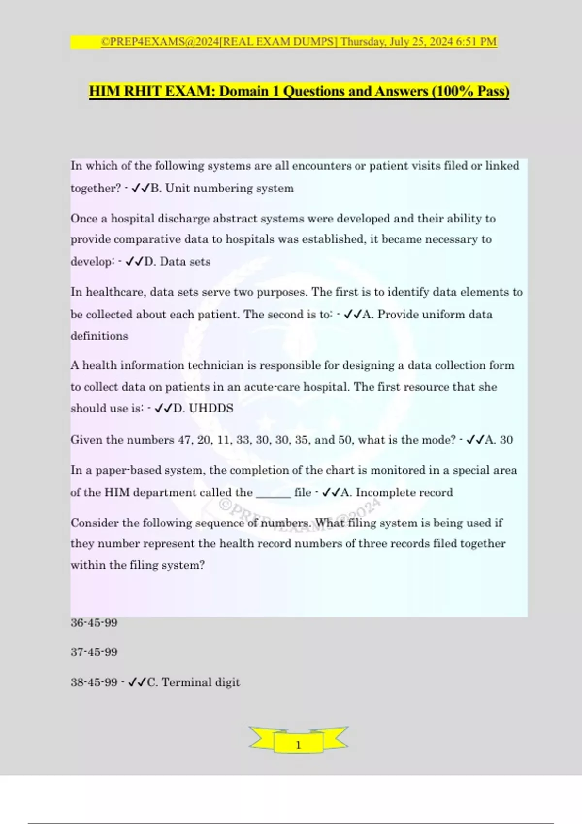 HIM RHIT EXAM: Domain 1 Questions and Answers (100% Pass)
