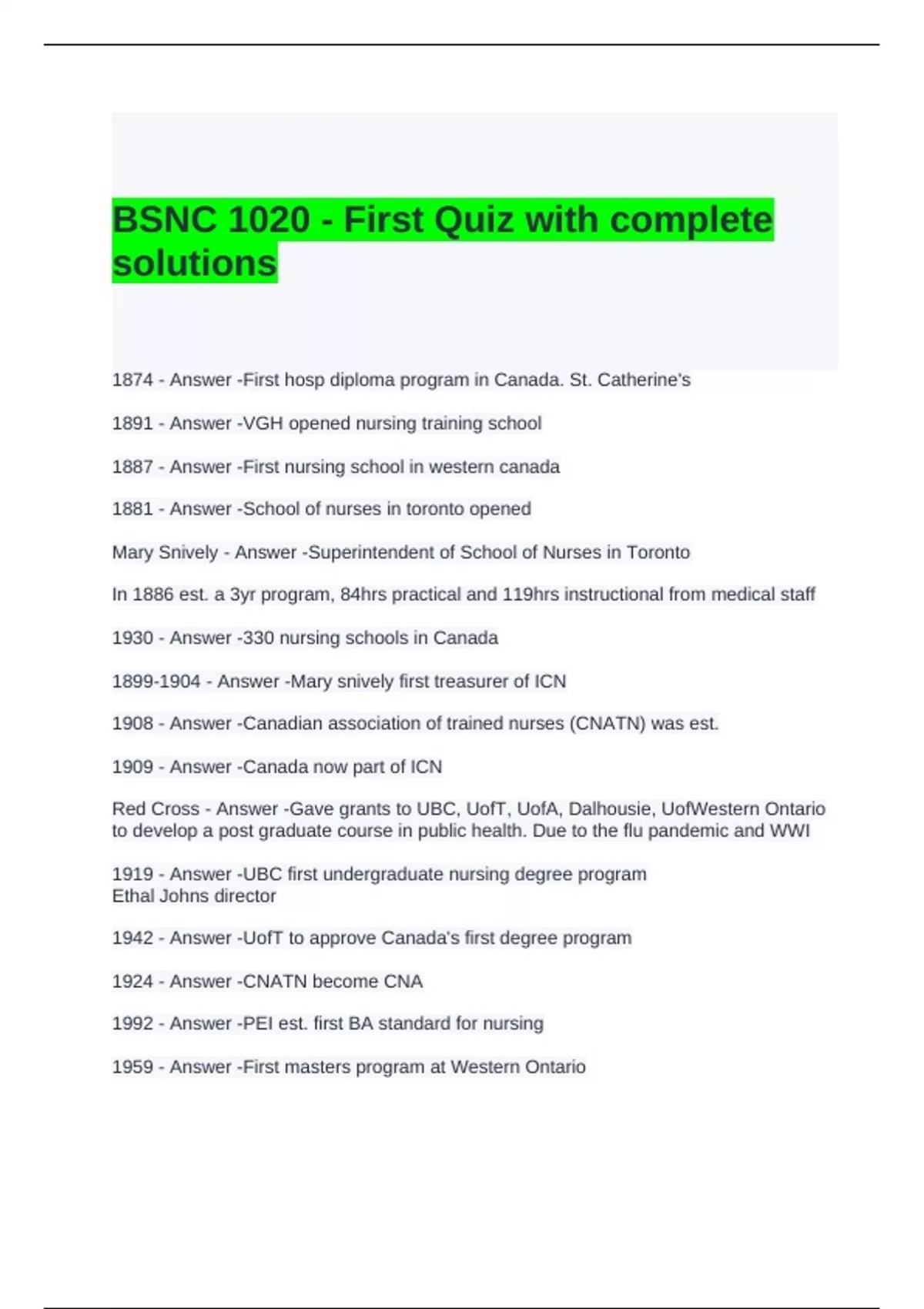 1874 - Answer -First hosp diploma program in Canada. St. Catherine's