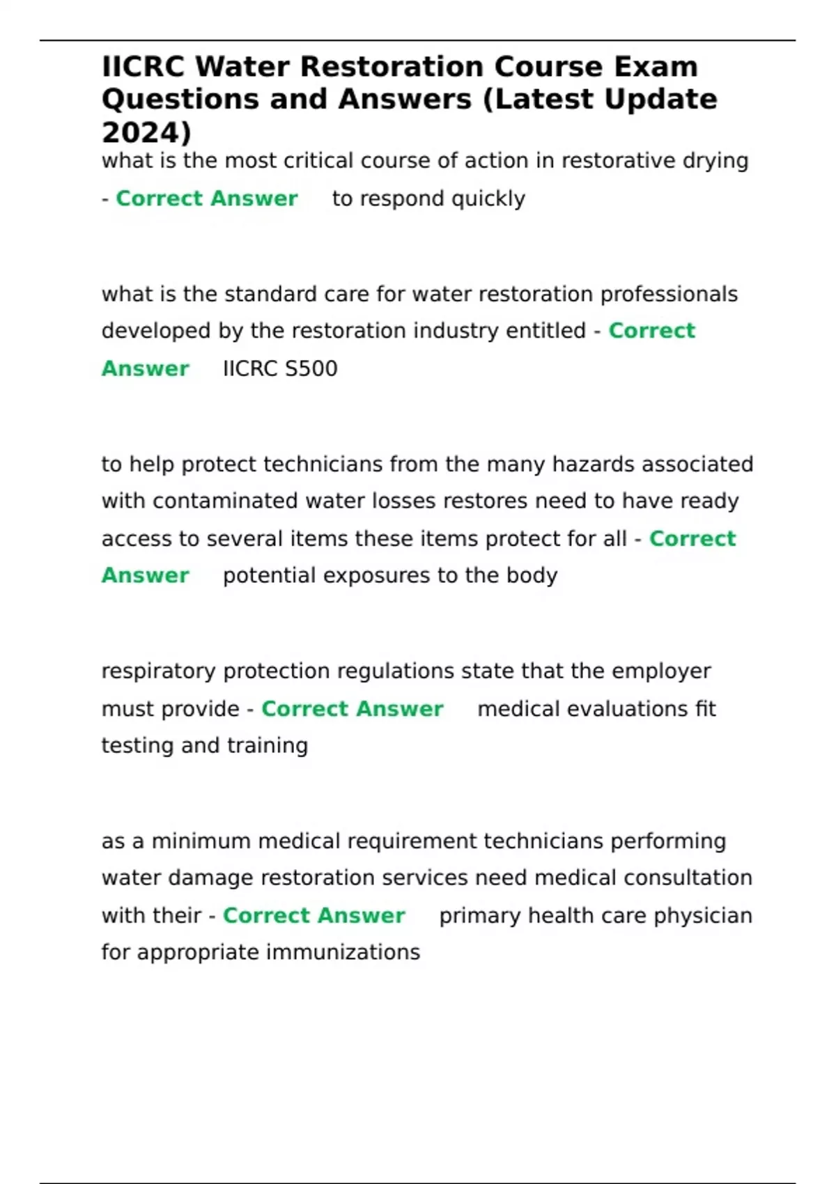 , IICRC Water Restoration Course Exam