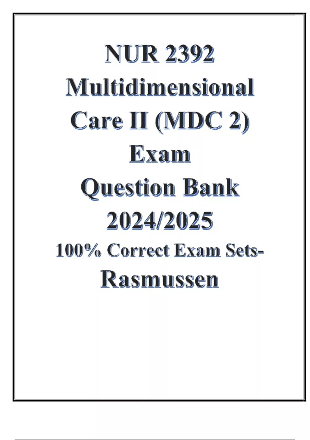 NUR 2392 Multidimensional Care II (MDC 2) Exam (Question Bank 2024/2025) 100% Correct Exam Sets- Rasmussen