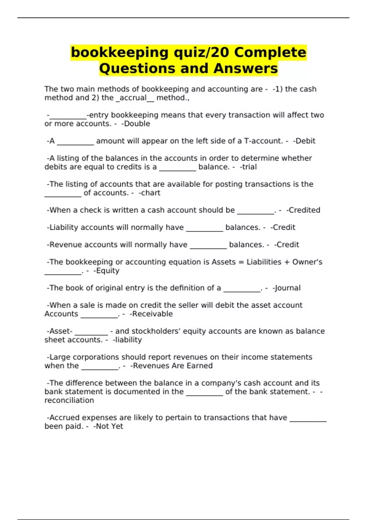 -The bookkeeping or accounting equation is Assets = Liabilities + Owner's