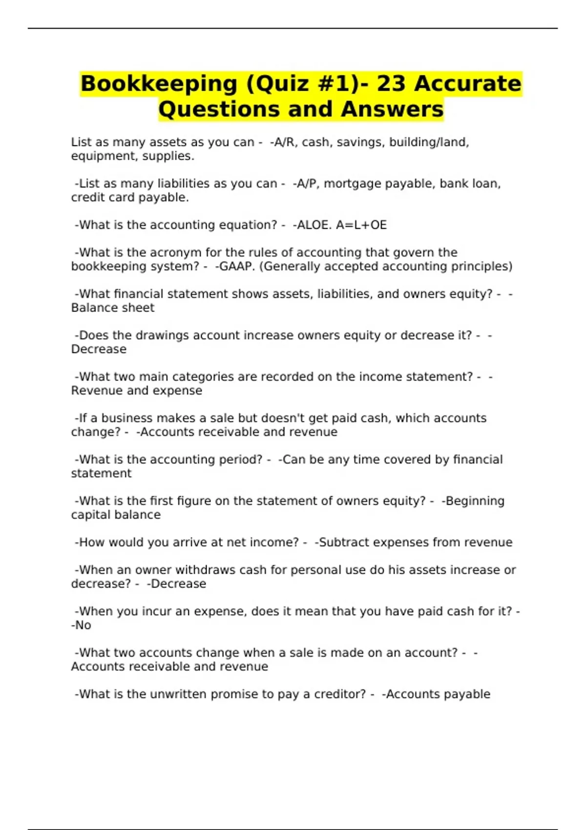 Bookkeeping (Quiz #1)- 23 Accurate