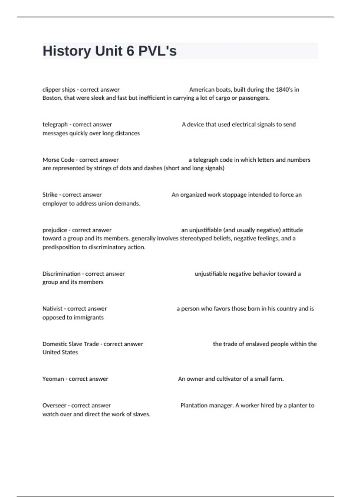 Domestic Slave Trade - correct answer the trade of enslaved people within the