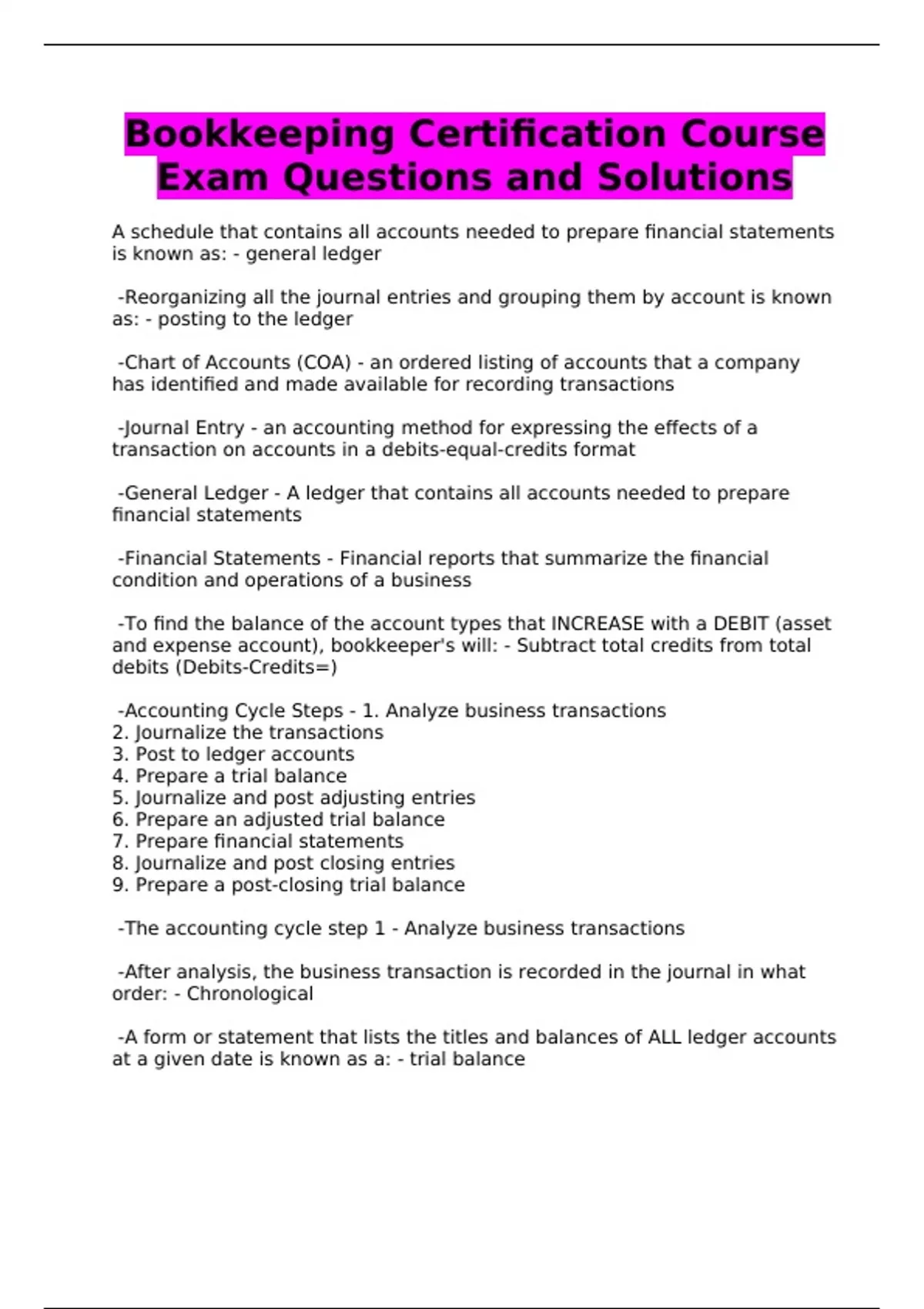 -Accounting Cycle Steps - 1. Analyze business transactions