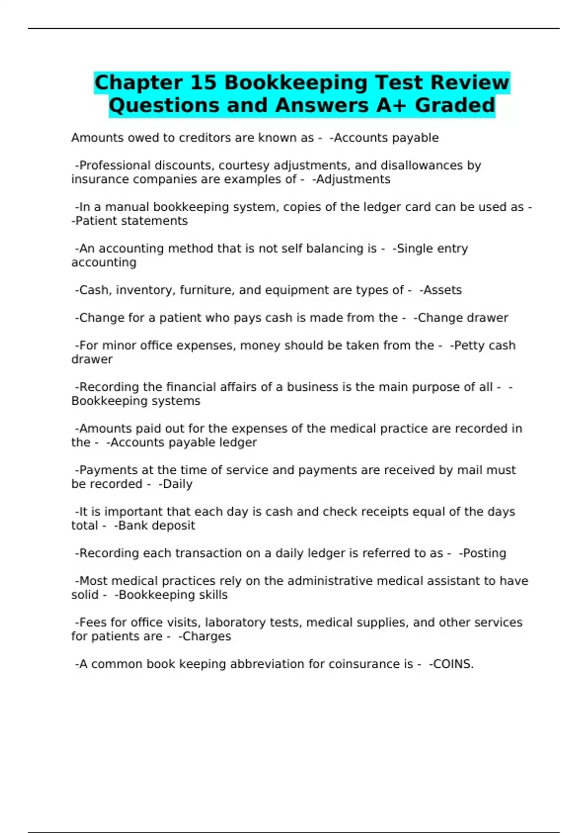 -A common book keeping abbreviation for coinsurance is - -COINS.