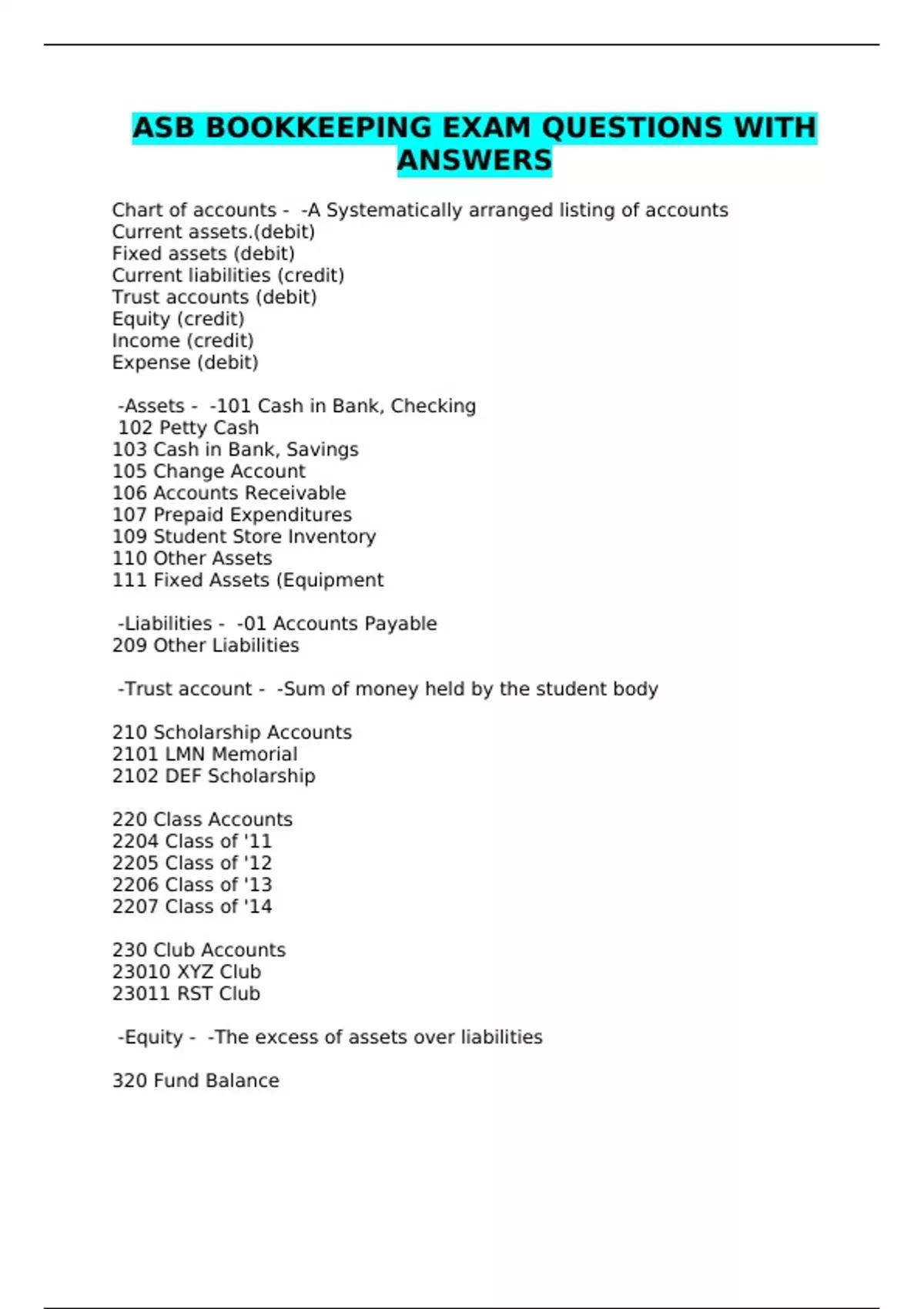 ASB BOOKKEEPING EXAM QUESTIONS WITH ANSWERS