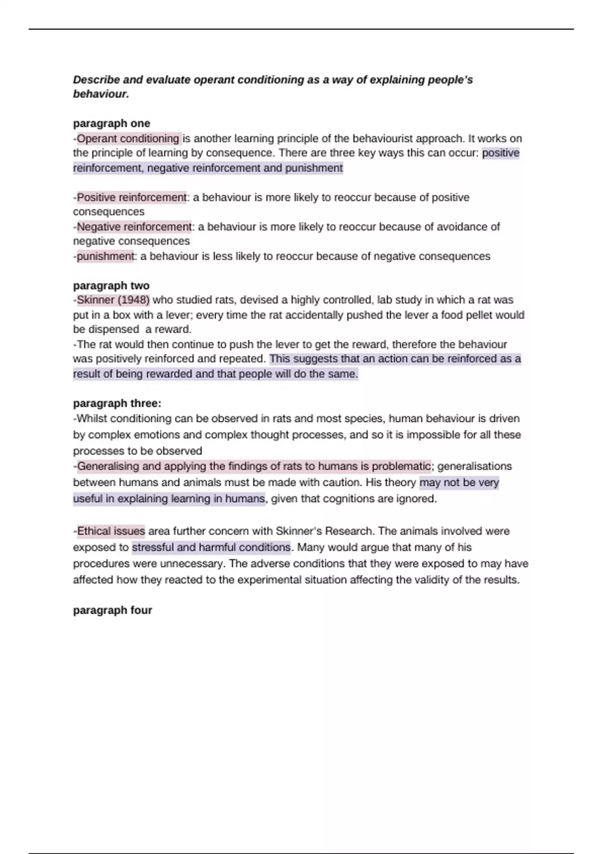 Describe and evaluate operant conditioning as a way of explaining people’s