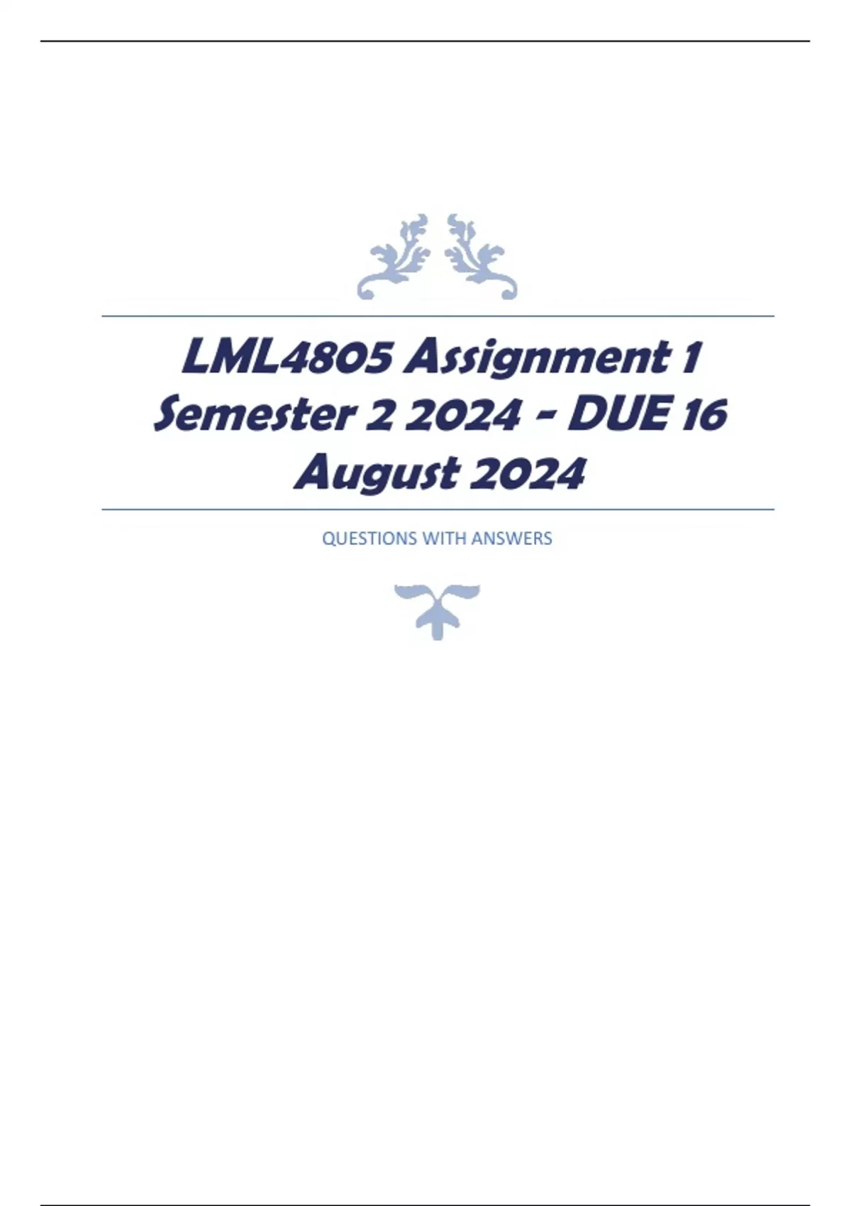 LML4805 Assignment 1 Semester 2 2024 - DUE 16 August 2024 QUESTIONS WITH DETAILED ANSWERS