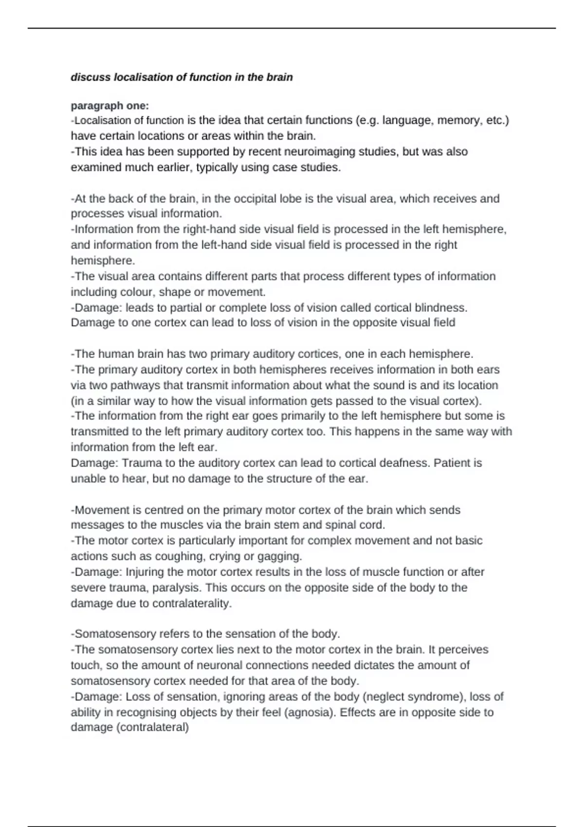 -Localisation of function is the idea that certain functions (e.g. language, memory, etc.)