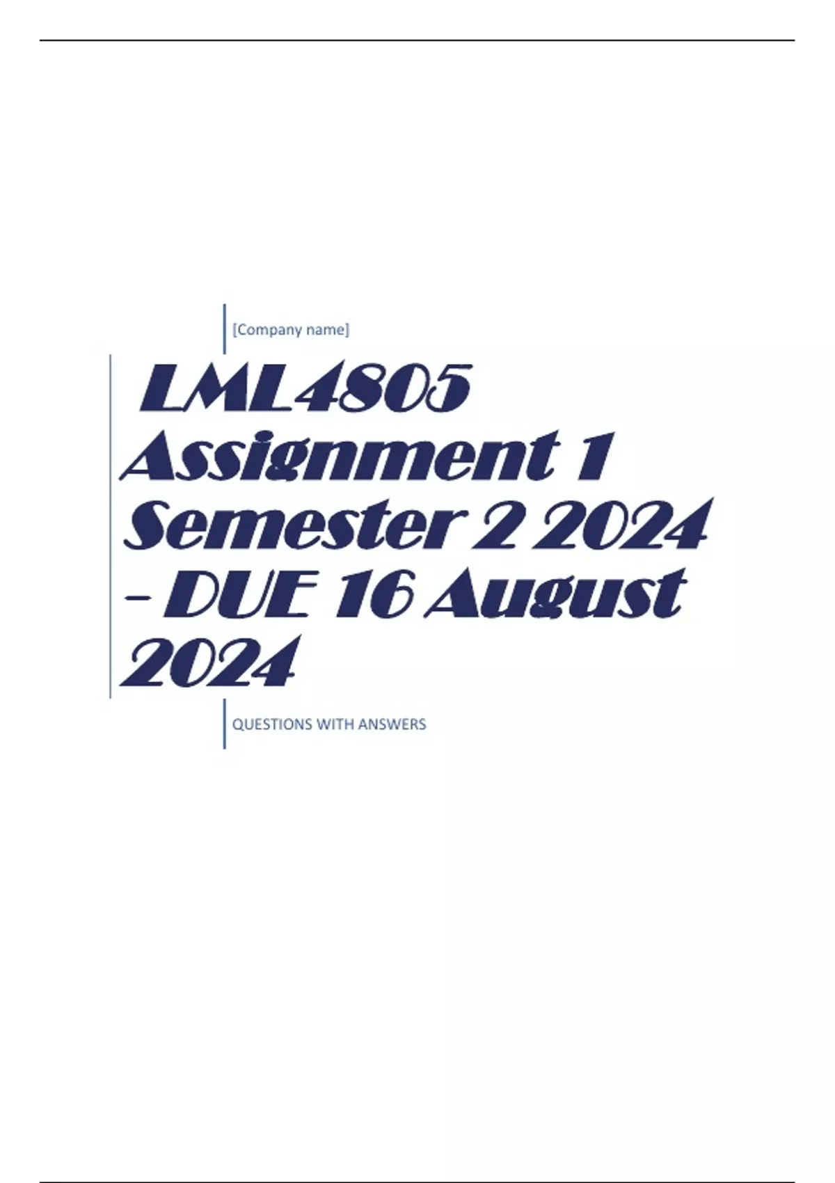 , LML4805 Assignment 1 Semester 2 2024 - DUE 16 August 2024