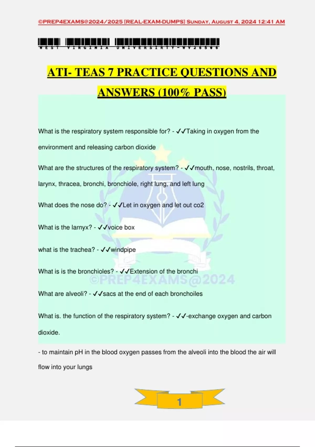 , ©PREP4EXAMS@2024/2025 [REAL-EXAM-DUMPS] Sunday, August 4, 2024 12:41 AM