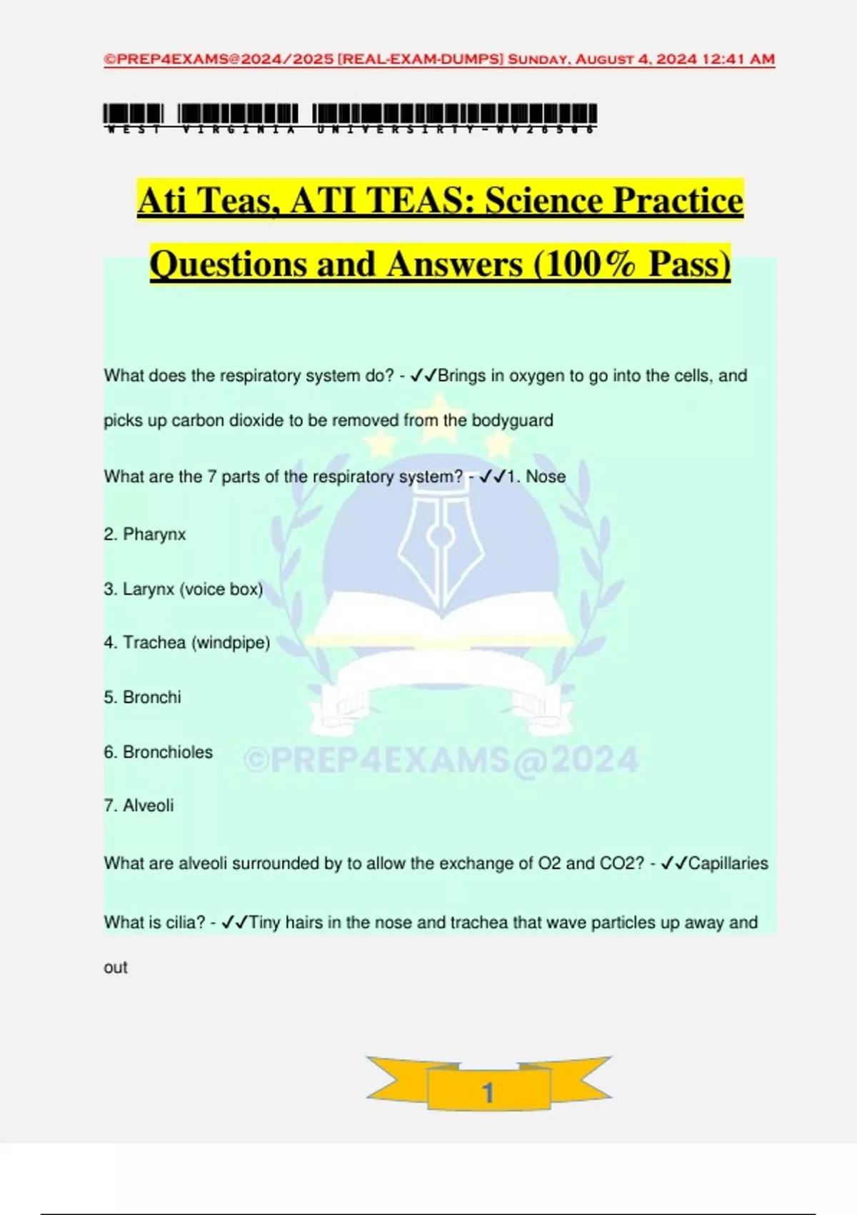 Ati Teas, ATI TEAS: Science Practice Questions and Answers (100% Pass)