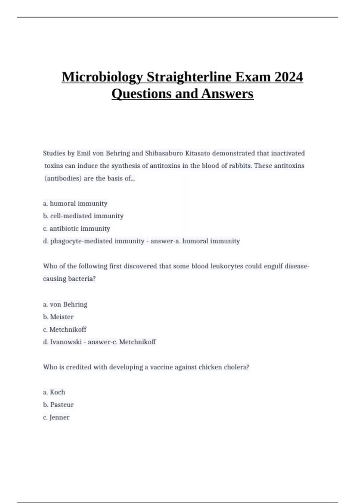 Microbiology Straighterline Exam 2024 Questions and Answers.