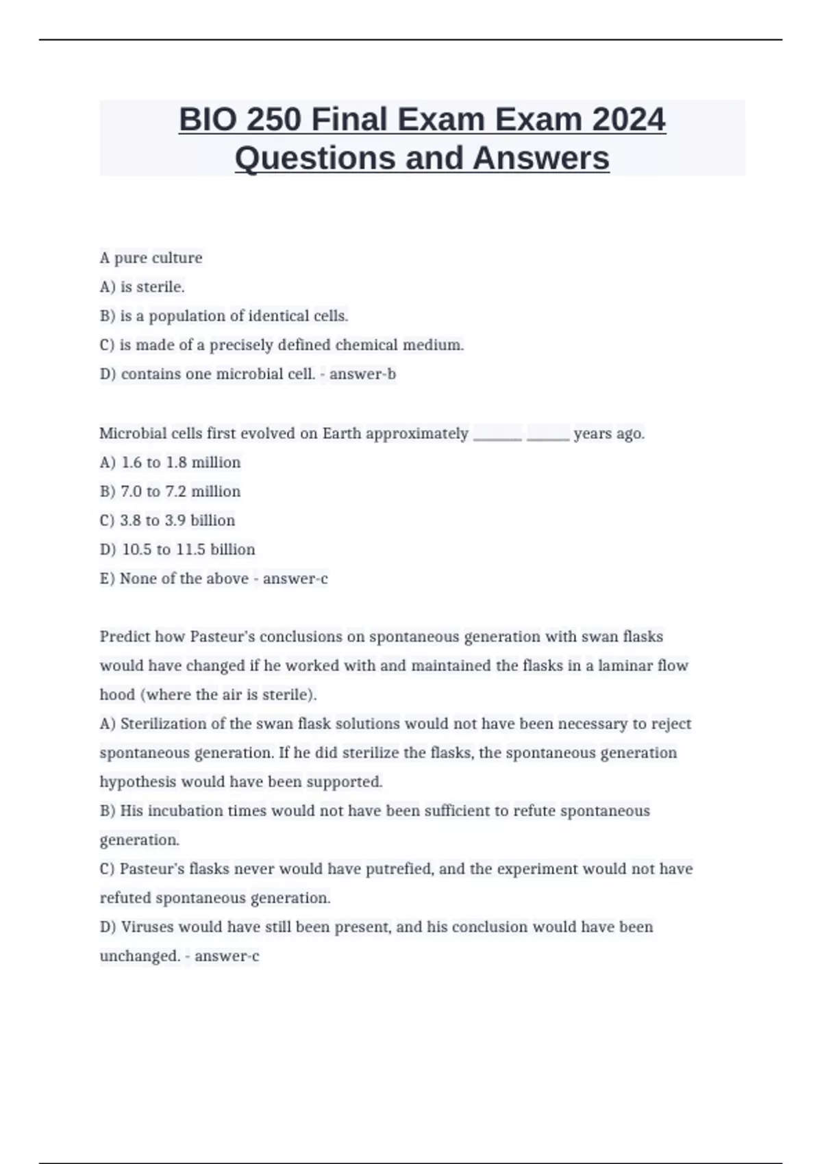 BIO 250 Final Exam Exam 2024 Questions and Answers.