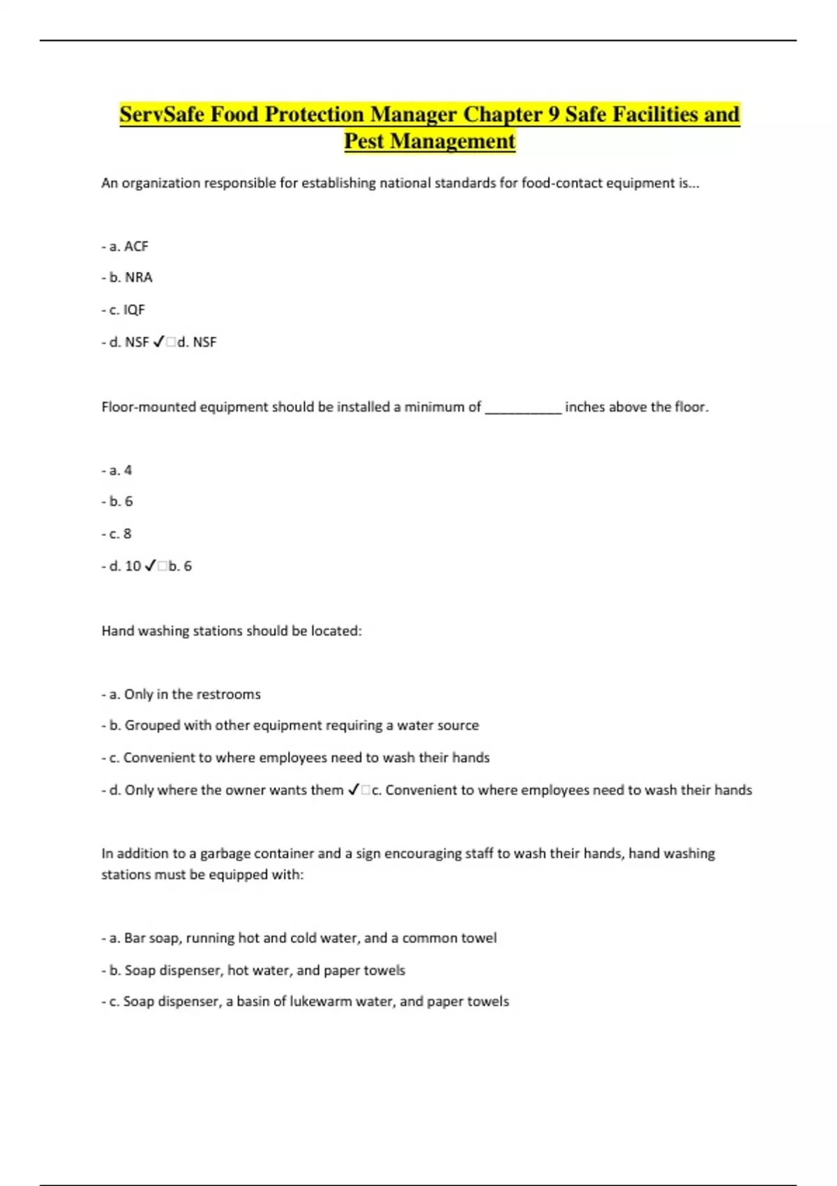 , - d. Soap dispenser, hot and cold running water, and paper towels ✔️d. Soap dispenser, hot and cold