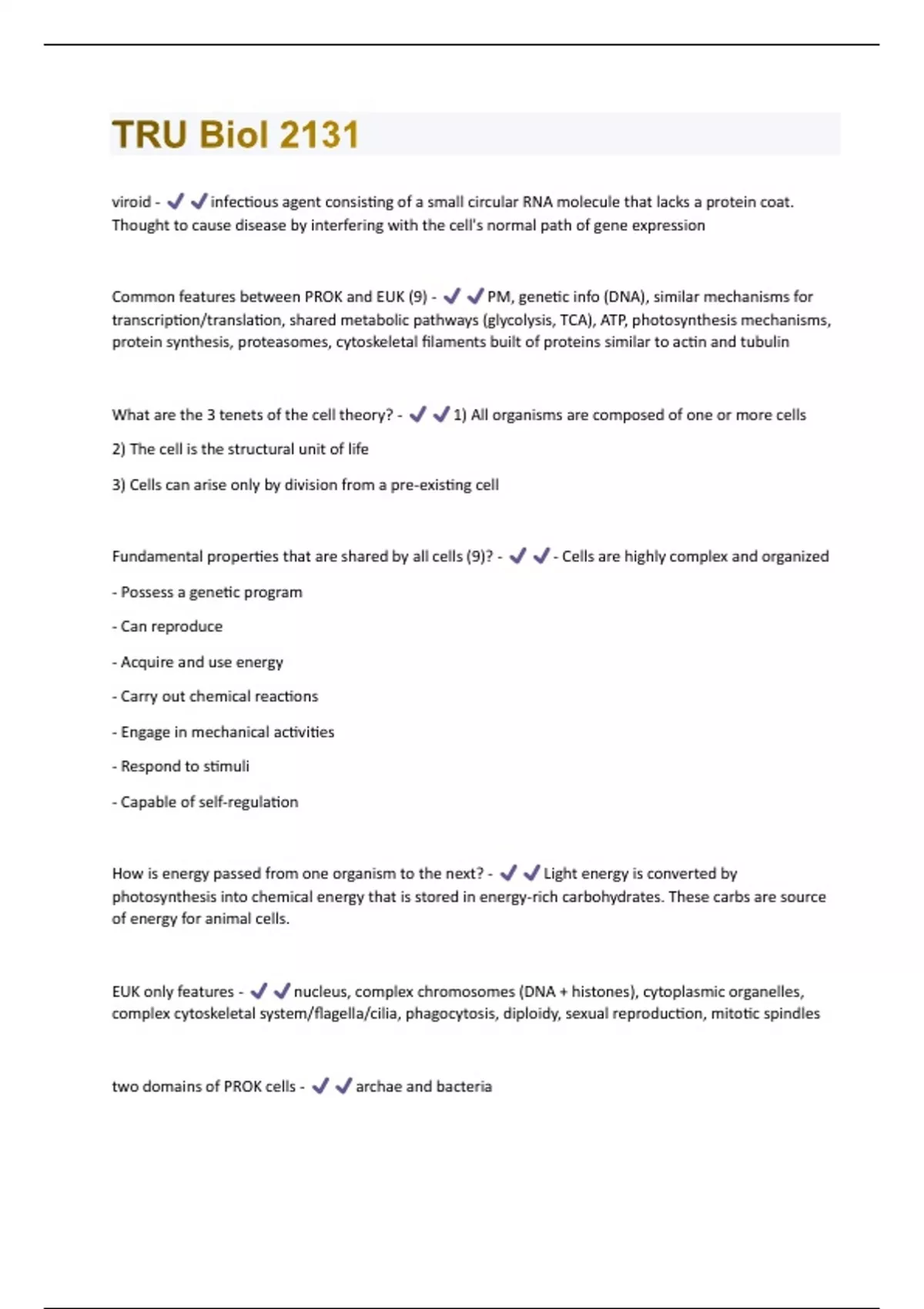 Fundamental properties that are shared by all cells (9)? - - Cells are highly complex and organized