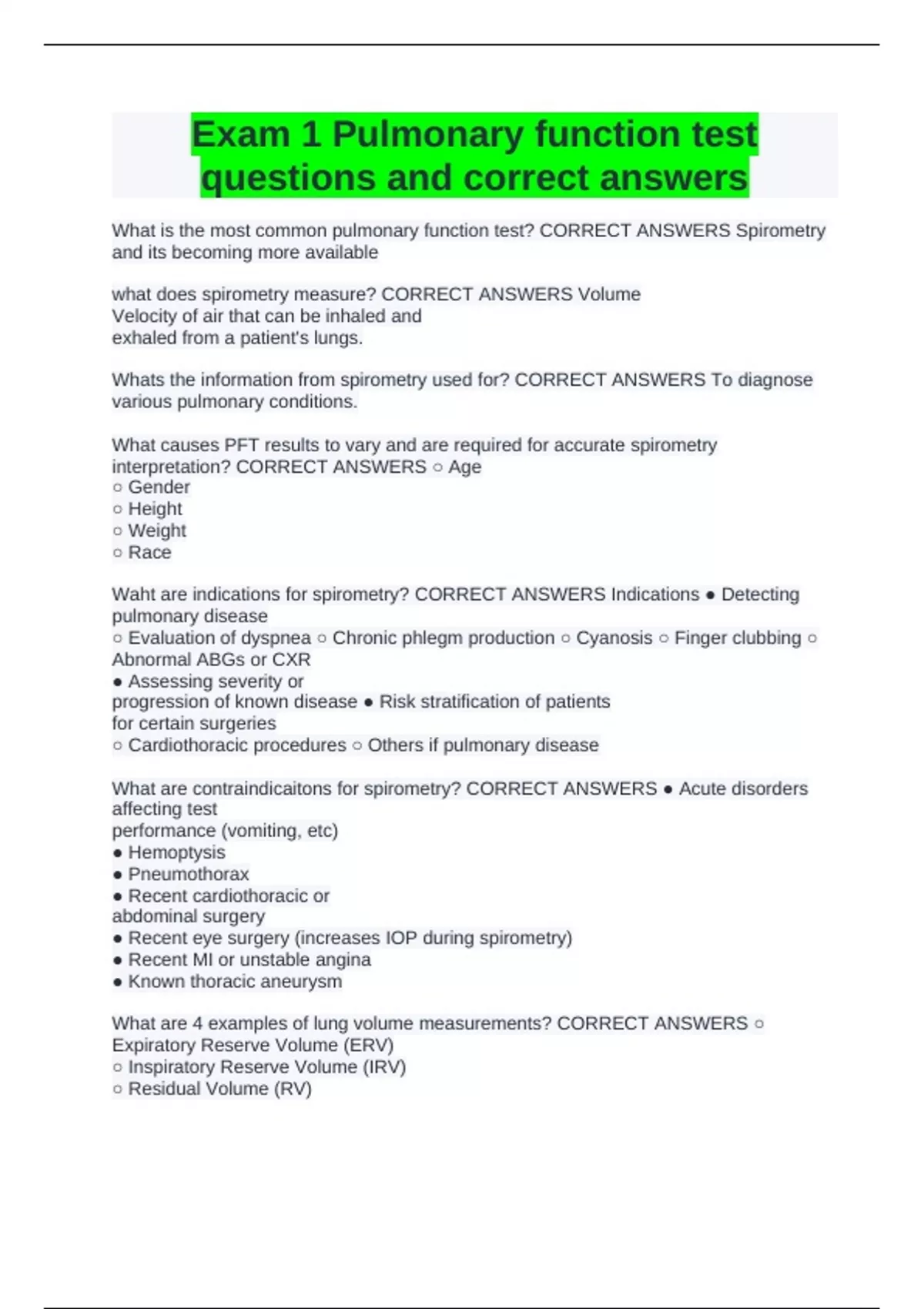 What is the most common pulmonary function test? CORRECT ANSWERS Spirometry