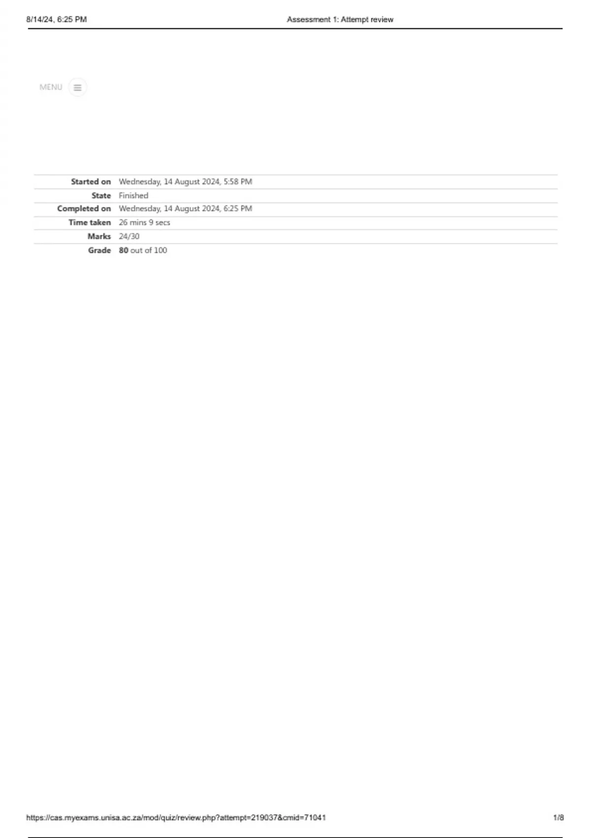 , 8/14/24, 6:25 PM Assessment 1: Attempt review