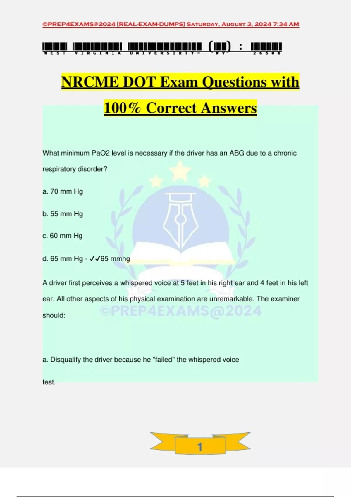 ,©PREP4EXAMS@2024 [REAL-EXAM-DUMPS] Saturday, August 3, 2024 7:34 AM