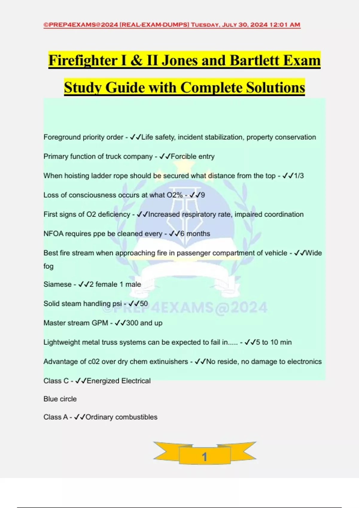 Firefighter I & II Jones and Bartlett Exam