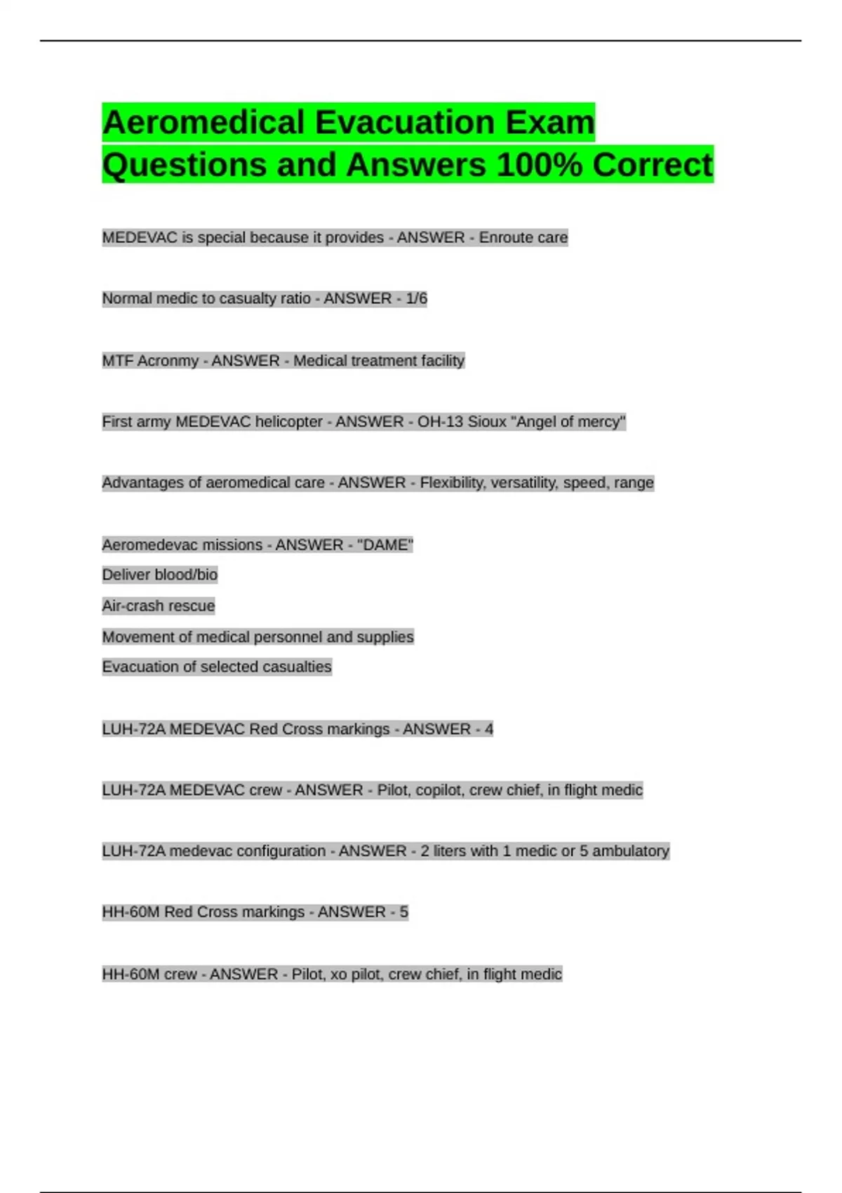 Aeromedevac missions - ANSWER - "DAME"