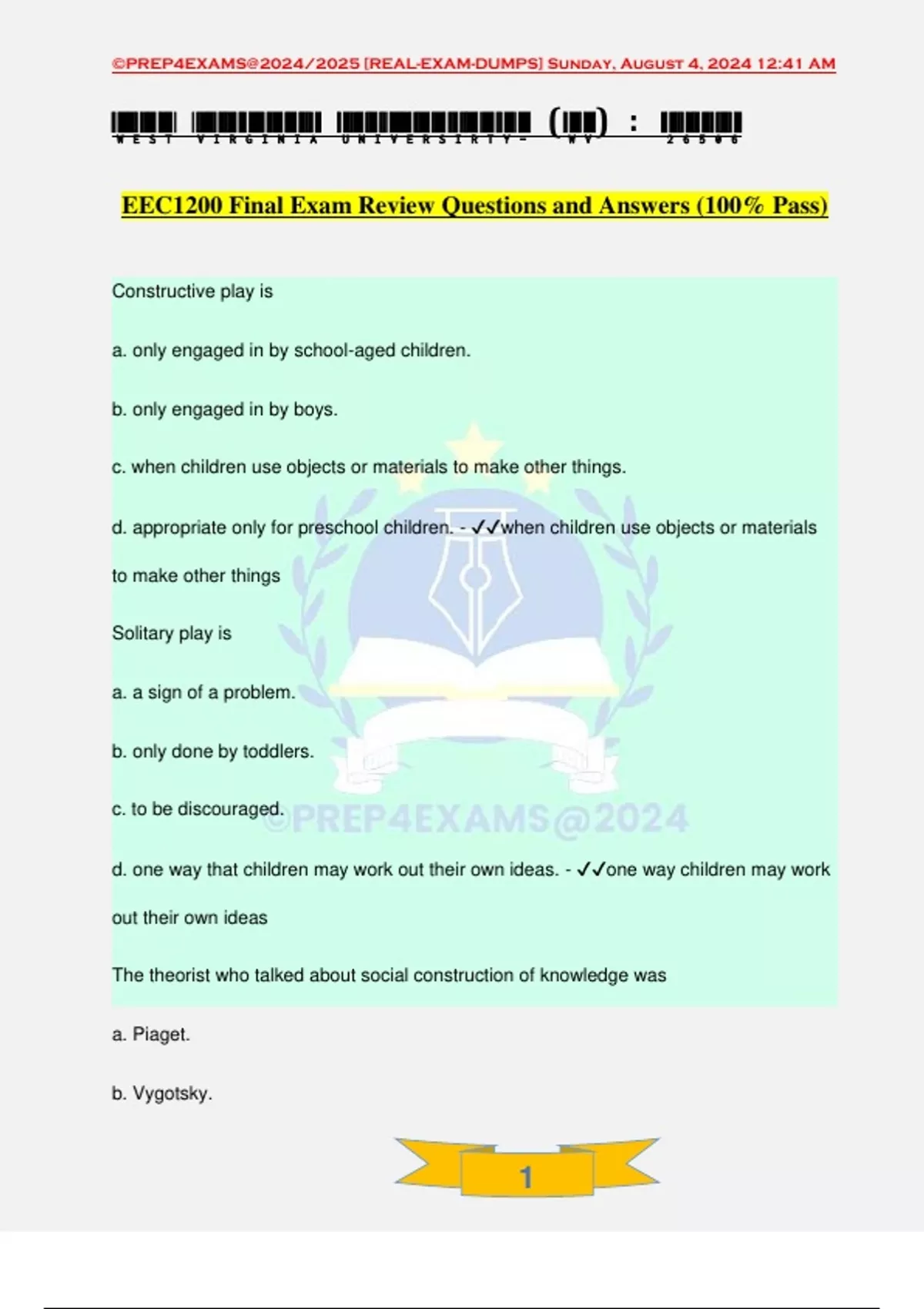 , ©PREP4EXAMS@2024/2025 [REAL-EXAM-DUMPS] Sunday, August 4, 2024 12:41 AM