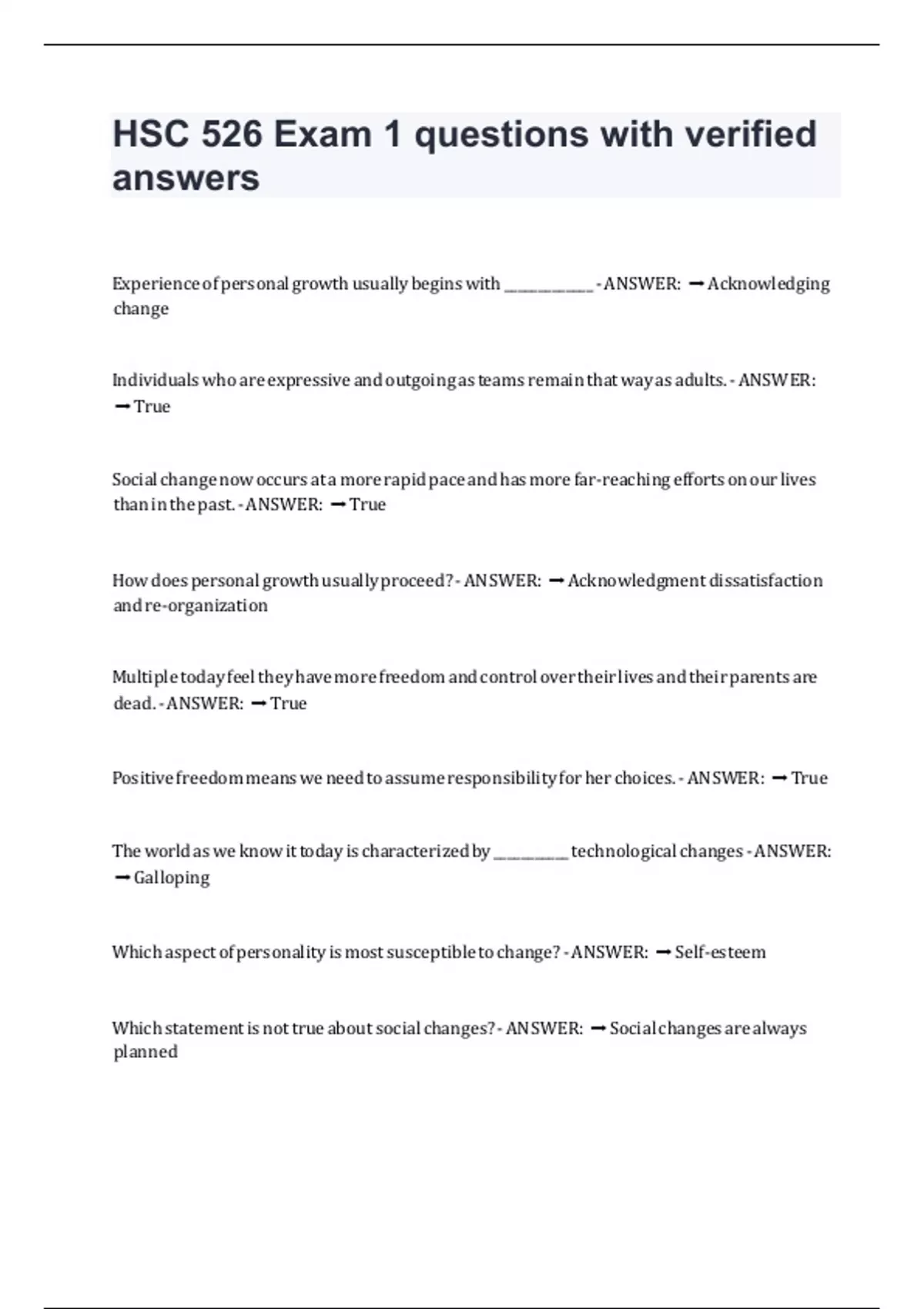 Which statement is not true about social changes? - ANSWER: ➡ Social changes are always