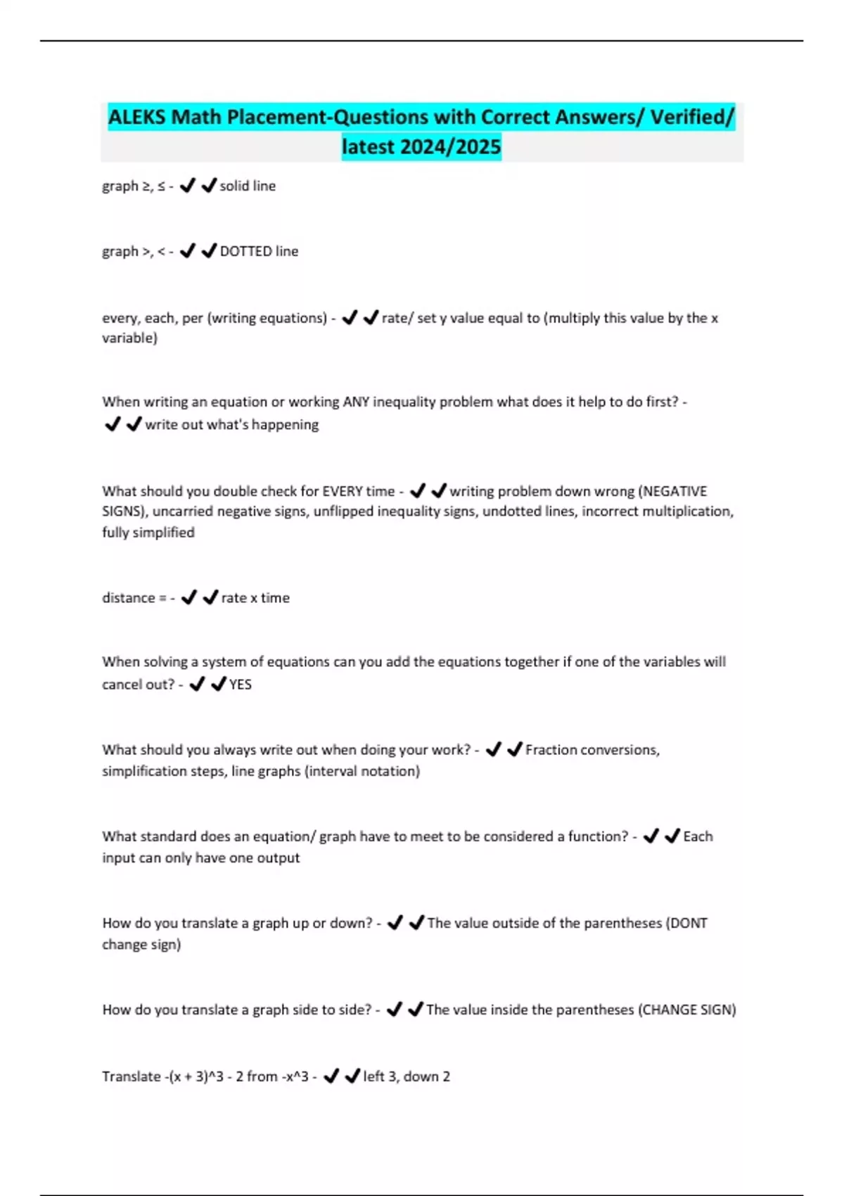 ALEKS Math Placement-Questions with Correct Answers/ Verified/