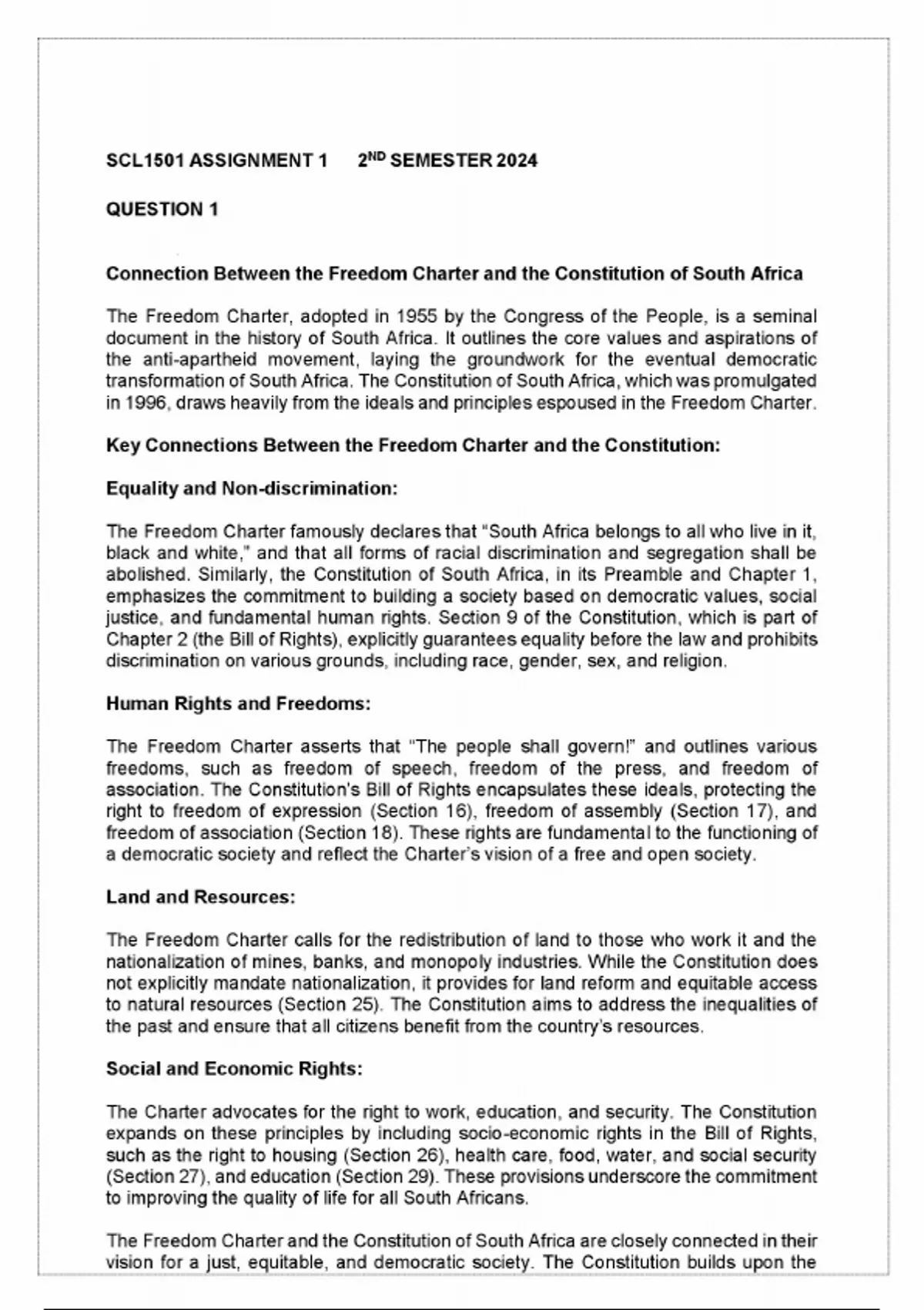 - SCL1501 Assignment 1 2024 (SCL1501)