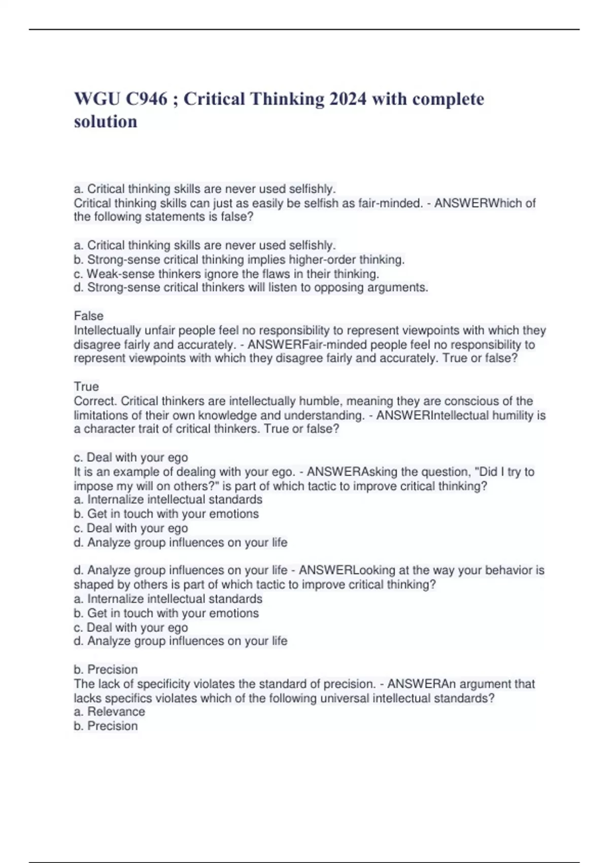 Critical thinking skills can just as easily be selfish as fair-minded. - ANSWERWhich of