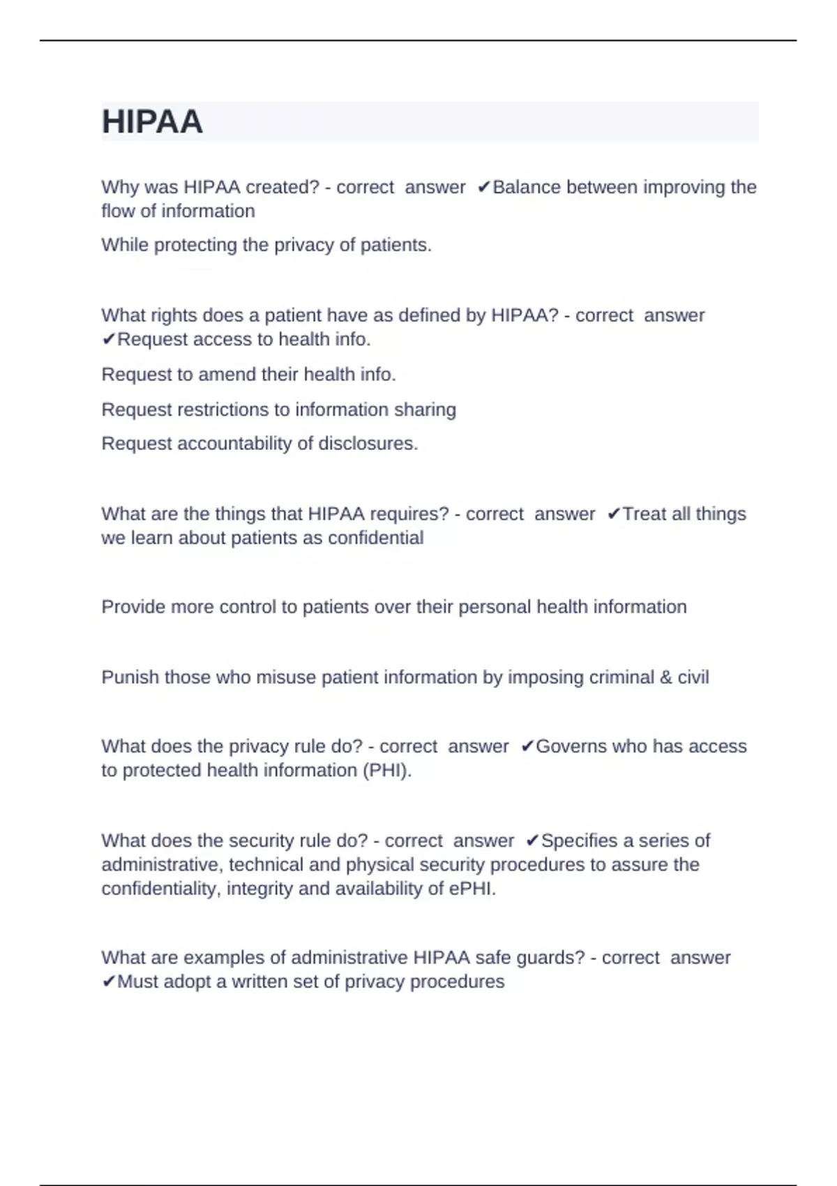 What are the things that HIPAA requires? - correct answer ✔Treat all things