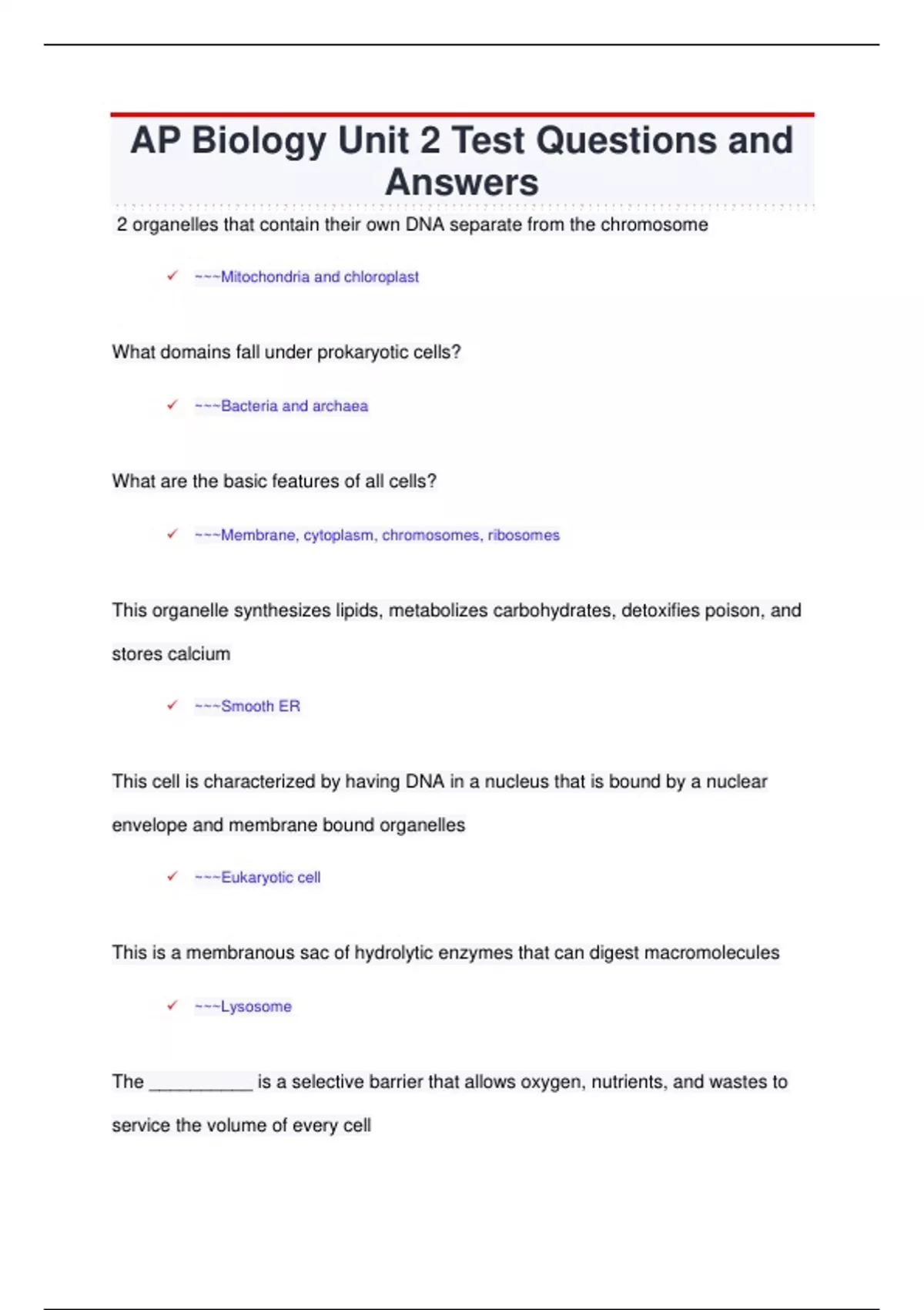 ✓ ~~~Eukaryotic cell