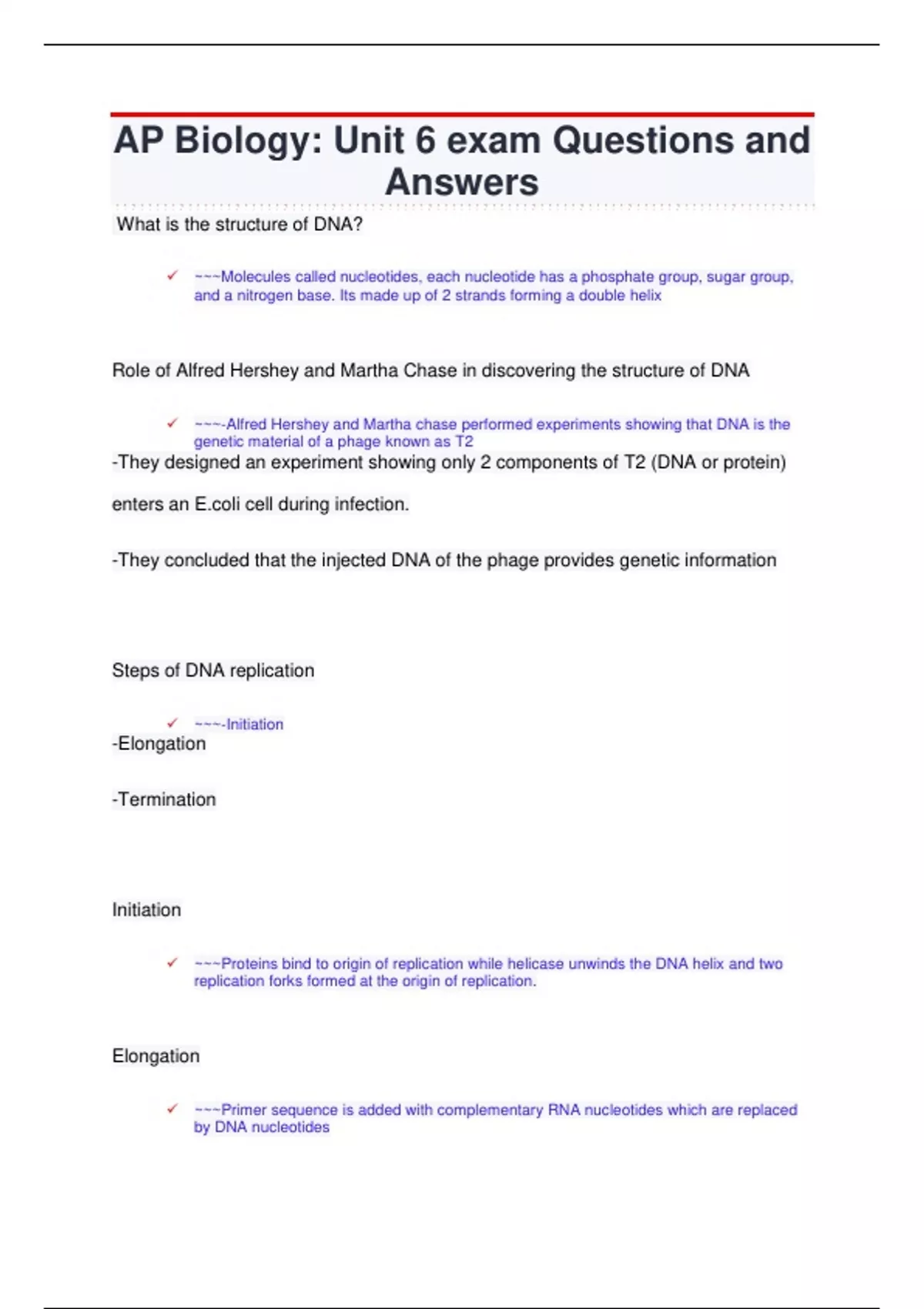 ✓ ~~~-Alfred Hershey and Martha chase performed experiments showing that DNA is the