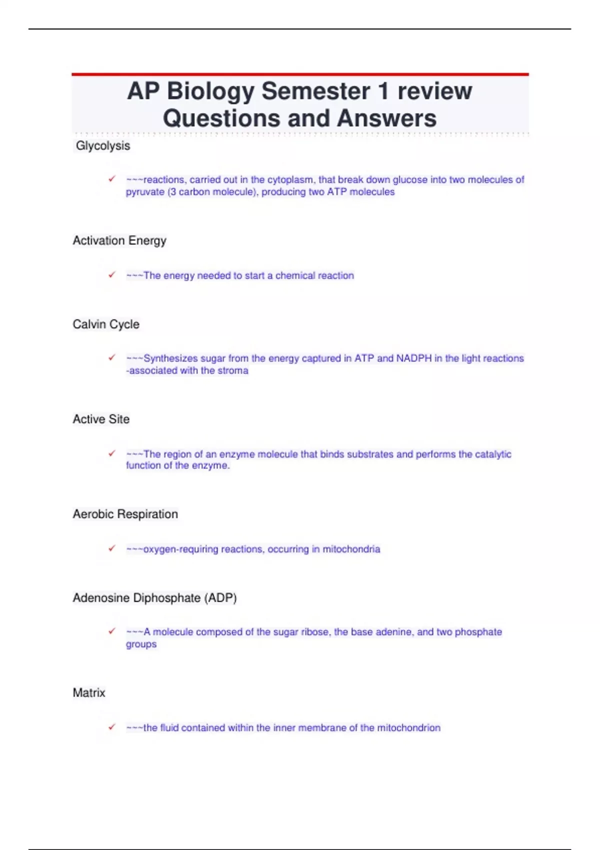 ✓ ~~~A series of anaerobic chemical reactions using pyruvic acid that follows glycolysis and