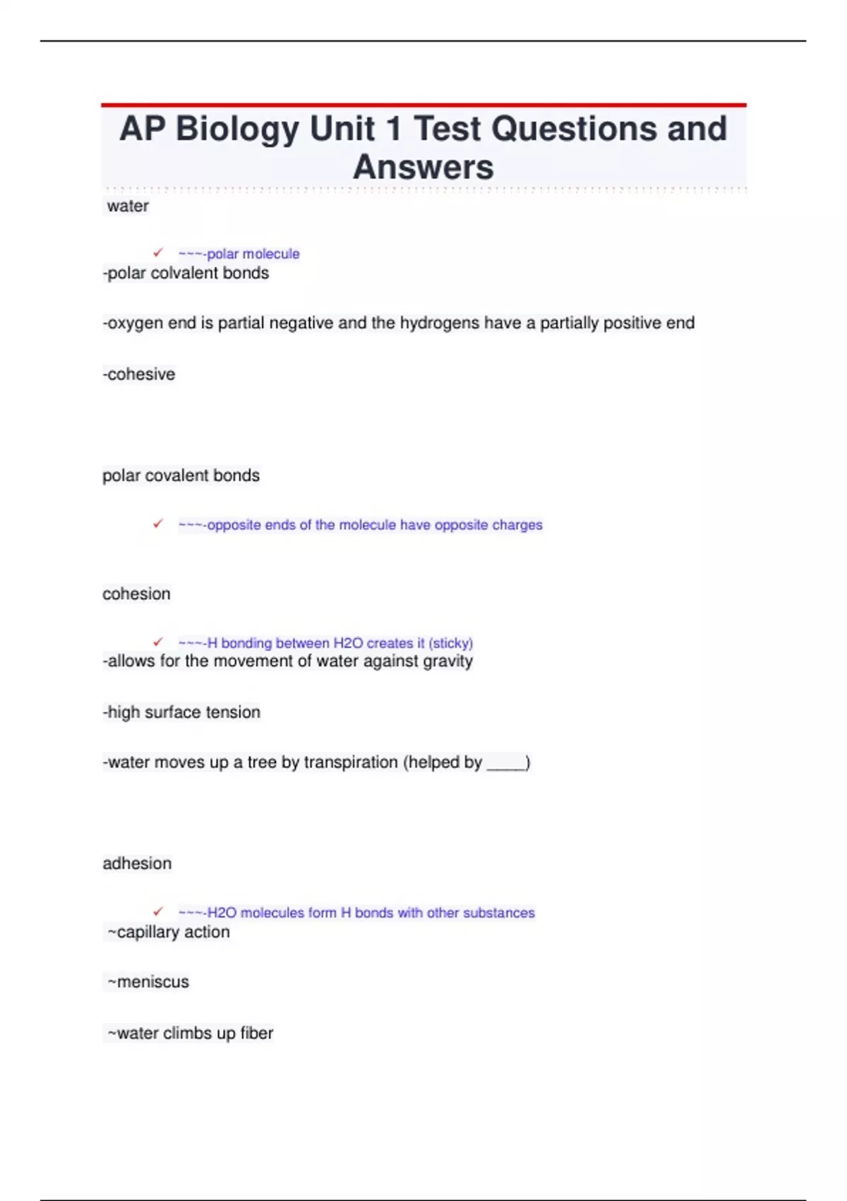 ✓ ~~~-H bonding between H2O creates it (sticky)