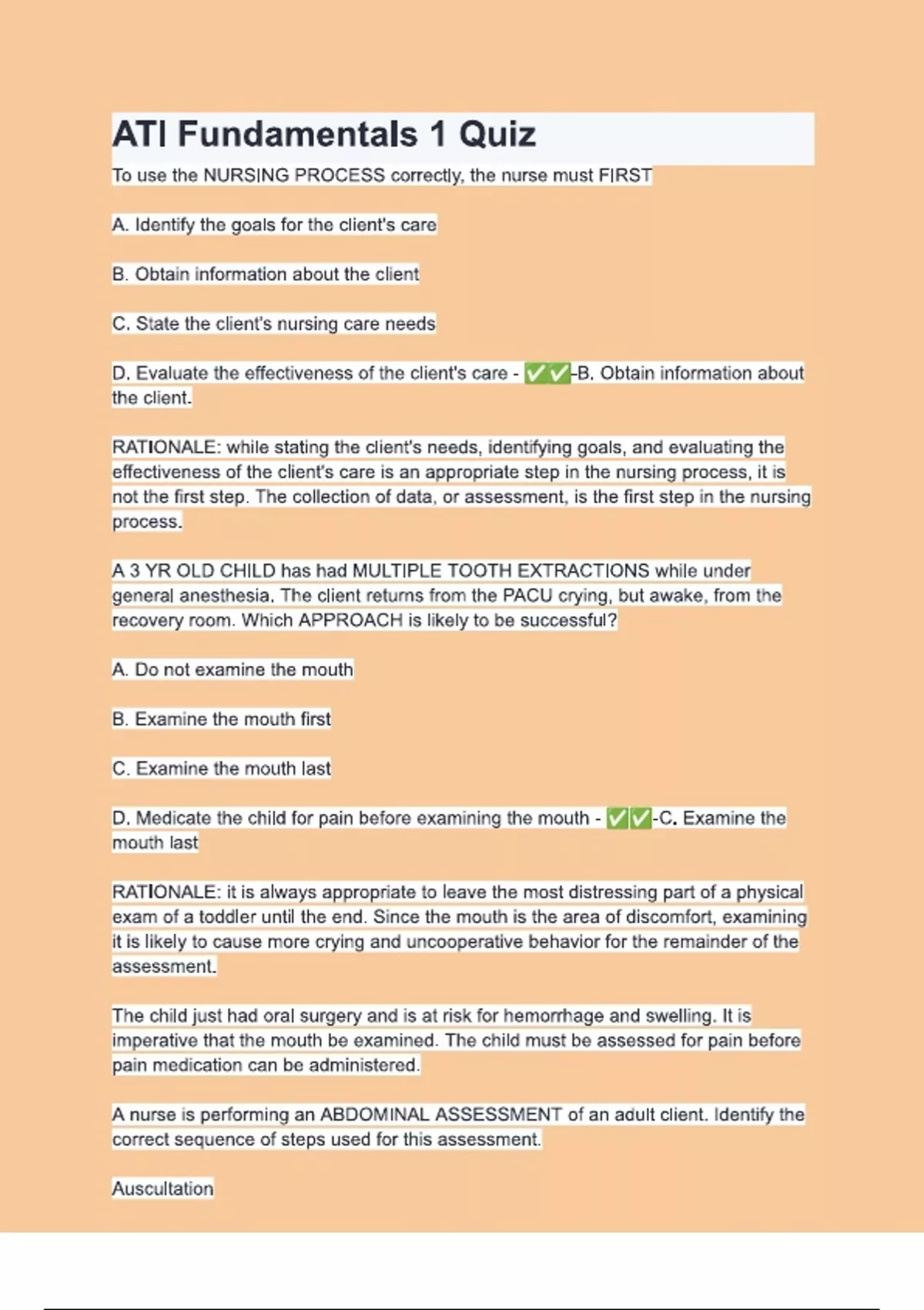 ATI Fundamentals 1 Quiz Questions & 100% Verified Correct Answers with complete solutions (Latest update